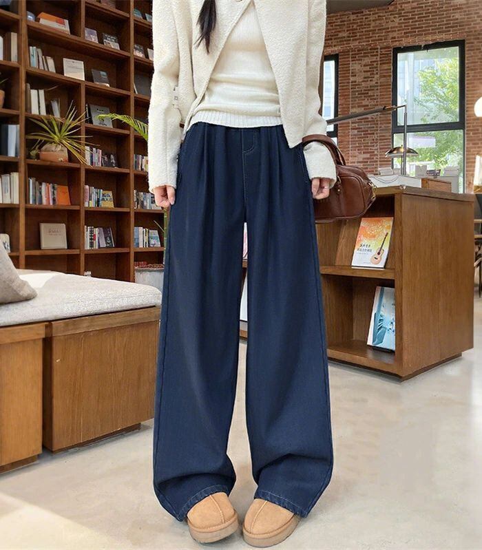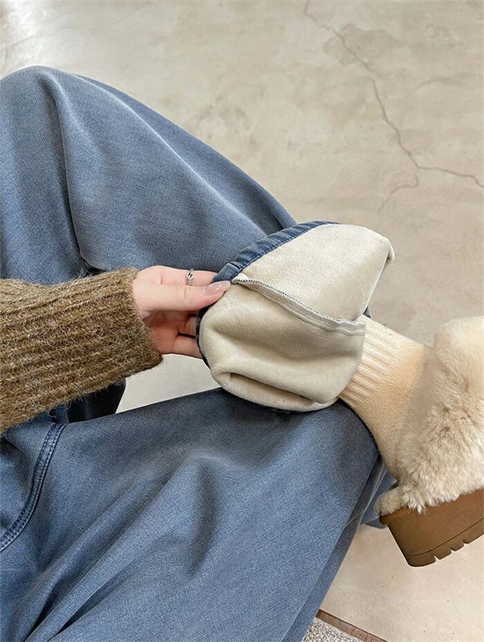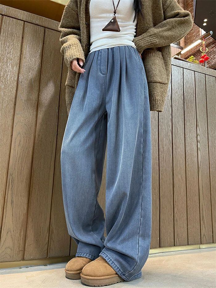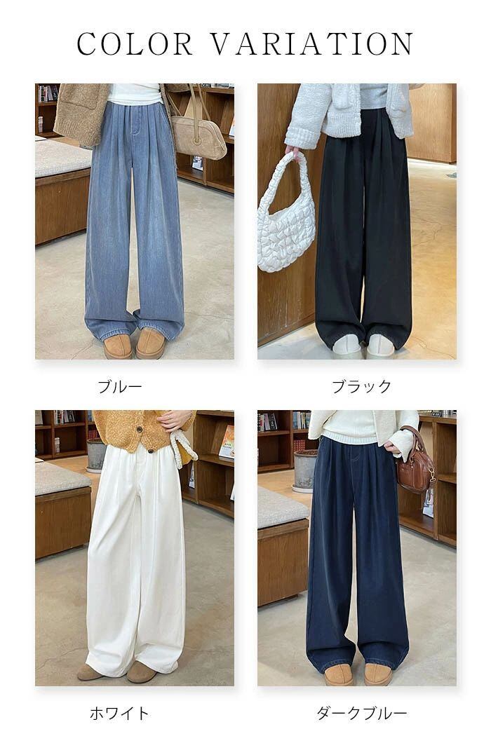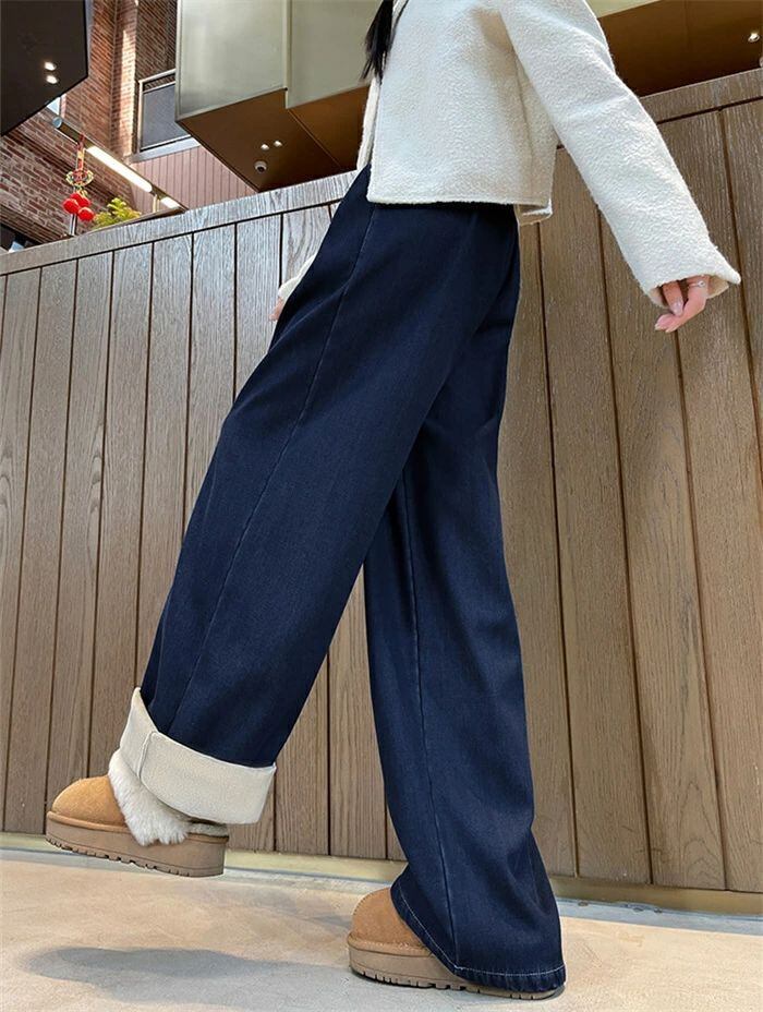 デニムパンツ パンツ 裏起毛 レディース 秋冬 ワイドパンツ デニム パンツ あったか イージーパンツ 楽ちん ハイウエス ストレートパンツ