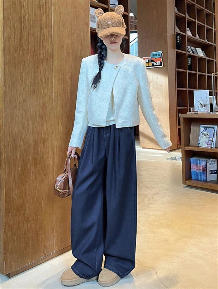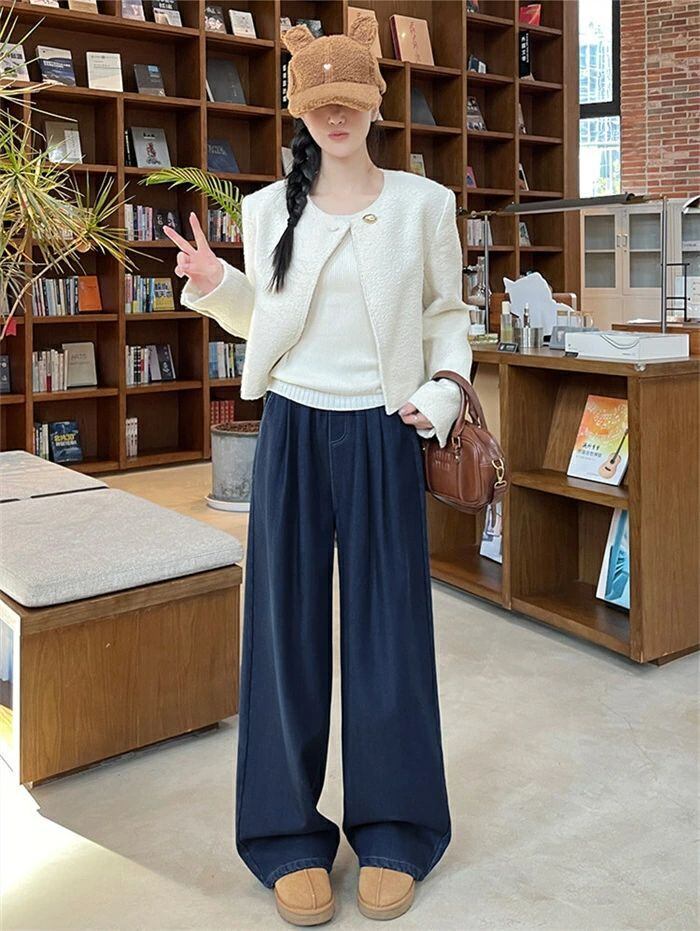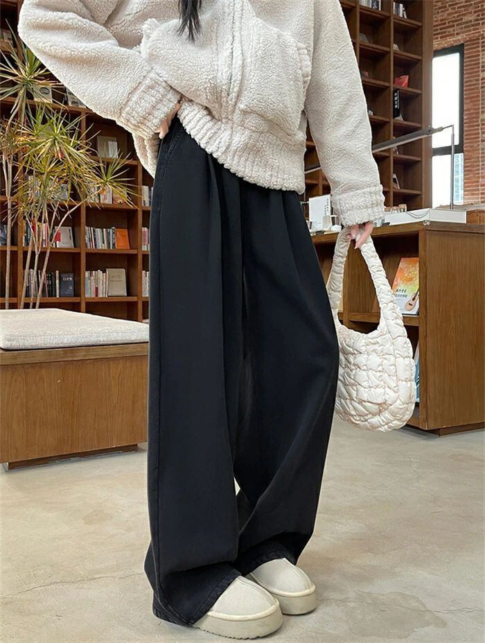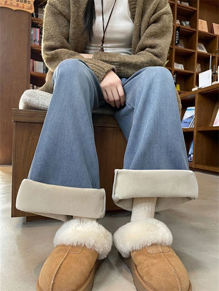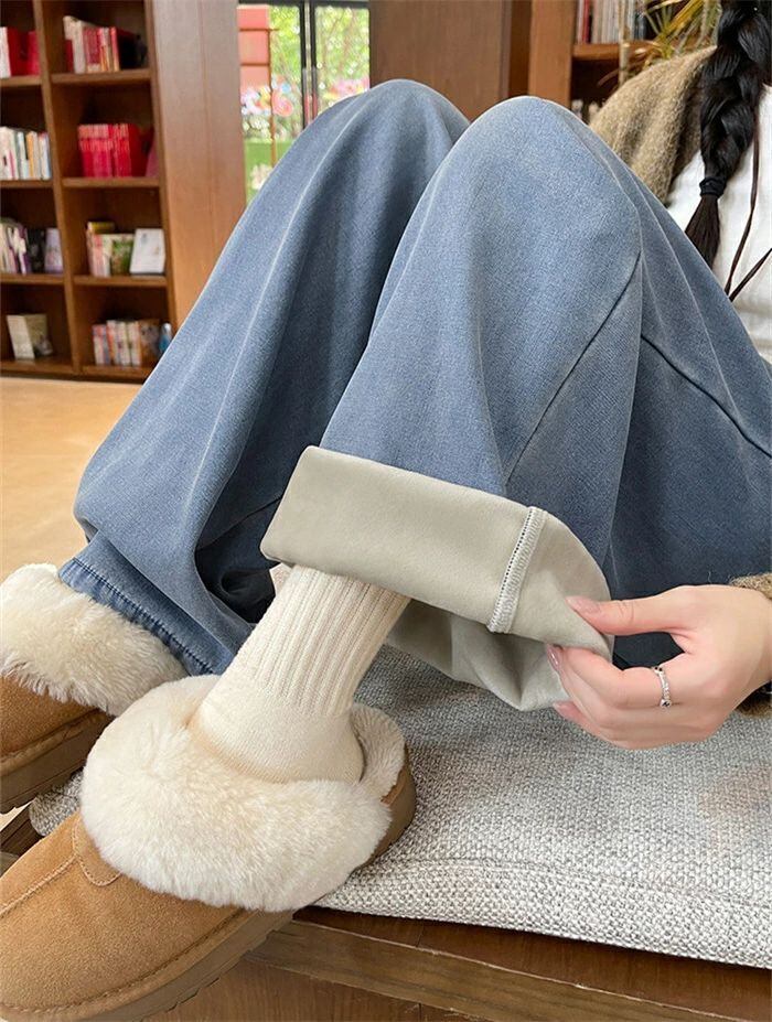 デニムパンツ パンツ 裏起毛 レディース 秋冬 ワイドパンツ デニム パンツ あったか イージーパンツ 楽ちん ハイウエス ストレートパンツ