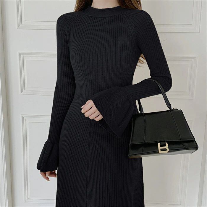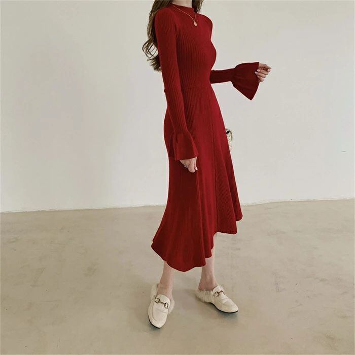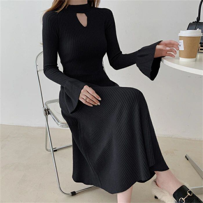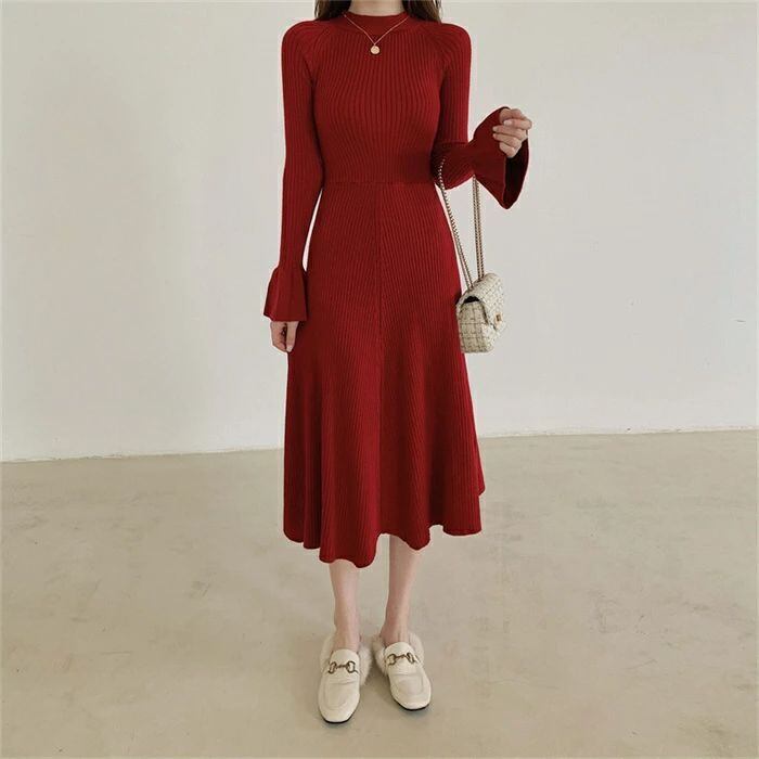 ニット ワンピース レディース ロング ワンピース ワンピ ハイネック 無地 前後両面着 aライン 秋 冬 長袖 体型カバー マーメード裾 大きいサイズ シンプル ゆったり 体型カバー きれいめ お洒落 ガーリー カジュアル 通勤 OL おしゃれ 可愛い 着痩せ 送料無料