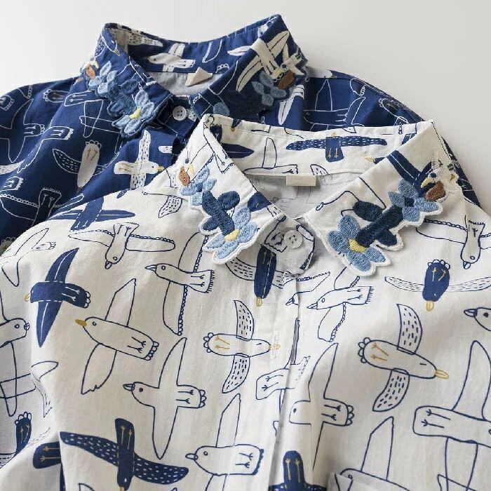 シャツ ブラウス レディース 刺?襟 長袖 春 夏 秋 カモメ柄 トップス シャツ アニマル柄 フェミニン 着回し シンプル おしゃれ 大人 カジ
