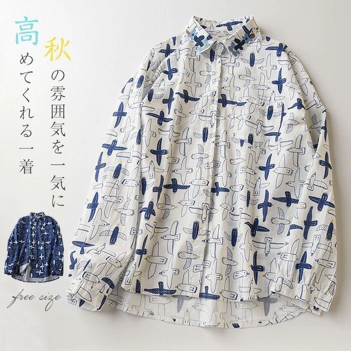シャツ ブラウス レディース 刺?襟 長袖 春 夏 秋 カモメ柄 トップス シャツ アニマル柄 フェミニン 着回し シンプル おしゃれ 大人 カジュアル ナチュラル ゆったり 大きいサイズ 体型カバー 女性らしい 着?せ 清涼感 爽やか きれいめ カジュアル 春 秋 送料無料 総柄 春 秋 30代 40代 50代 送料無料 きれいめ 新作 着痩せ 白 OL 通勤 オフィス 着回し 肌に優しい ミセス 大人 かわいい シンプル カジュアル オフィス ナチュラル 定番 可愛い