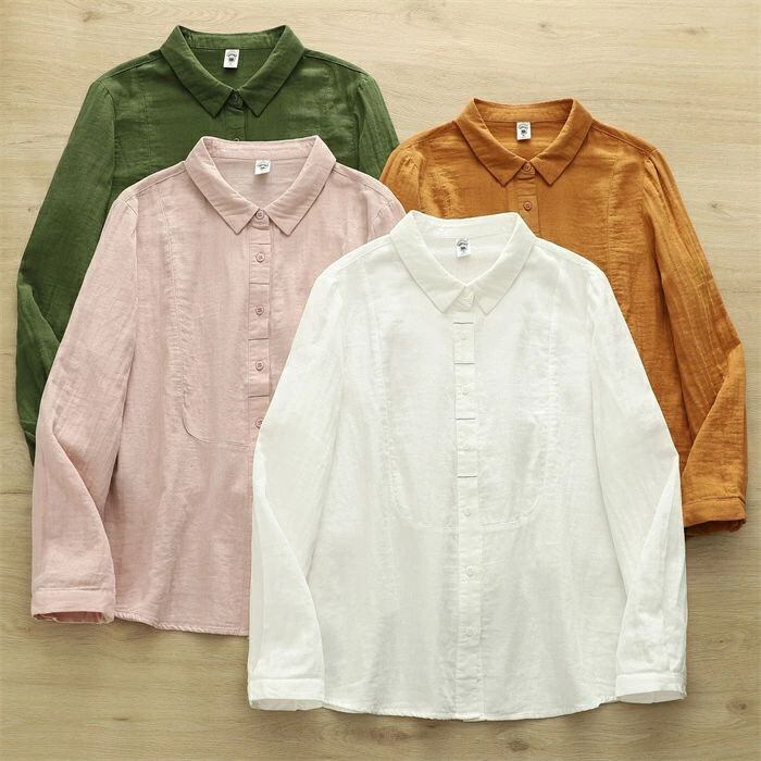 ガーゼシャツ シャツ 綿100% レディース 春秋 ダブルガーゼシャツ ブラウス シャツブラウス 仕事 白シャツ 綿ガーゼ コットン 長袖 白 シャツブラウス オフィス ビジネス トップス レイヤード 重ね着 着回し ゆったり 体型カバー カジュアル シンプル 通勤OL 通学
