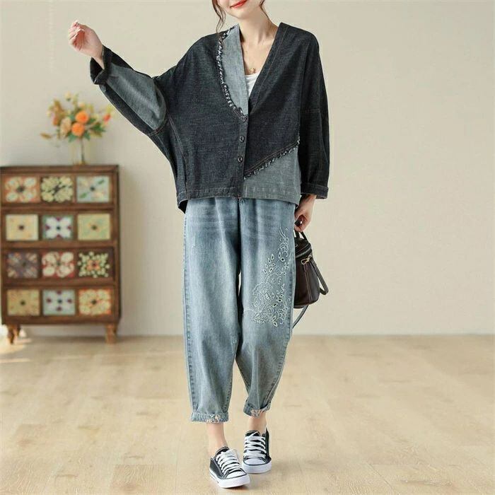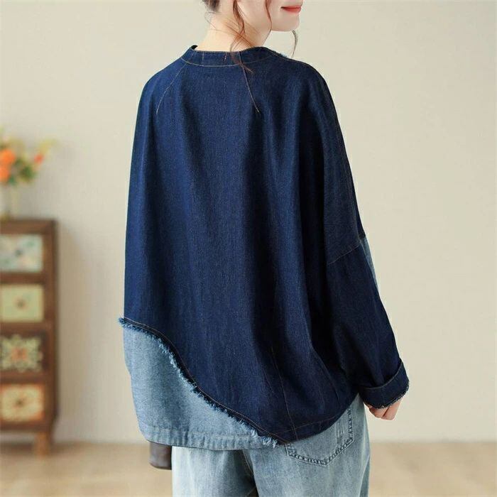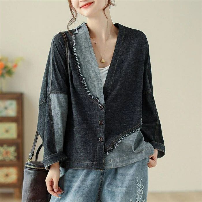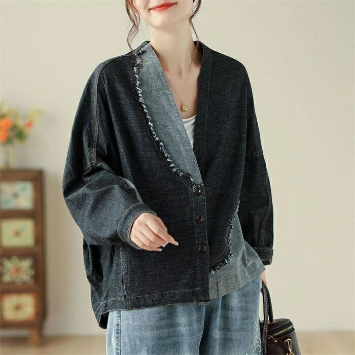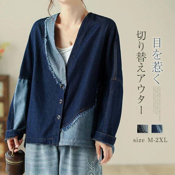 カーディガン デニム レディース アウター 切り替え ノーカラー デニムカーディガン ジャケット 長袖 カーデ 無地 切り替えカーディガン ト