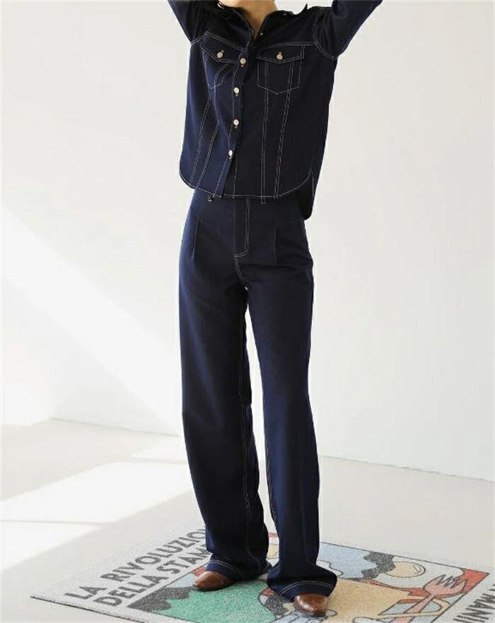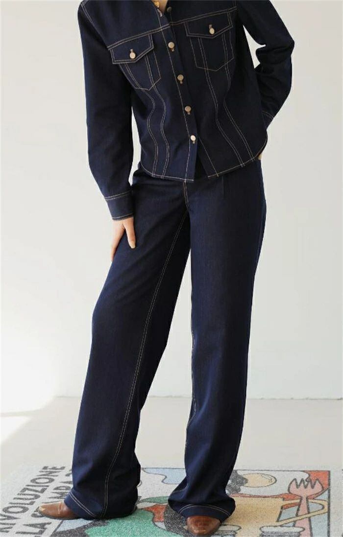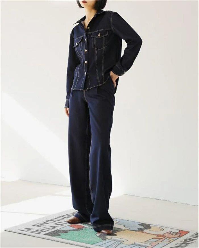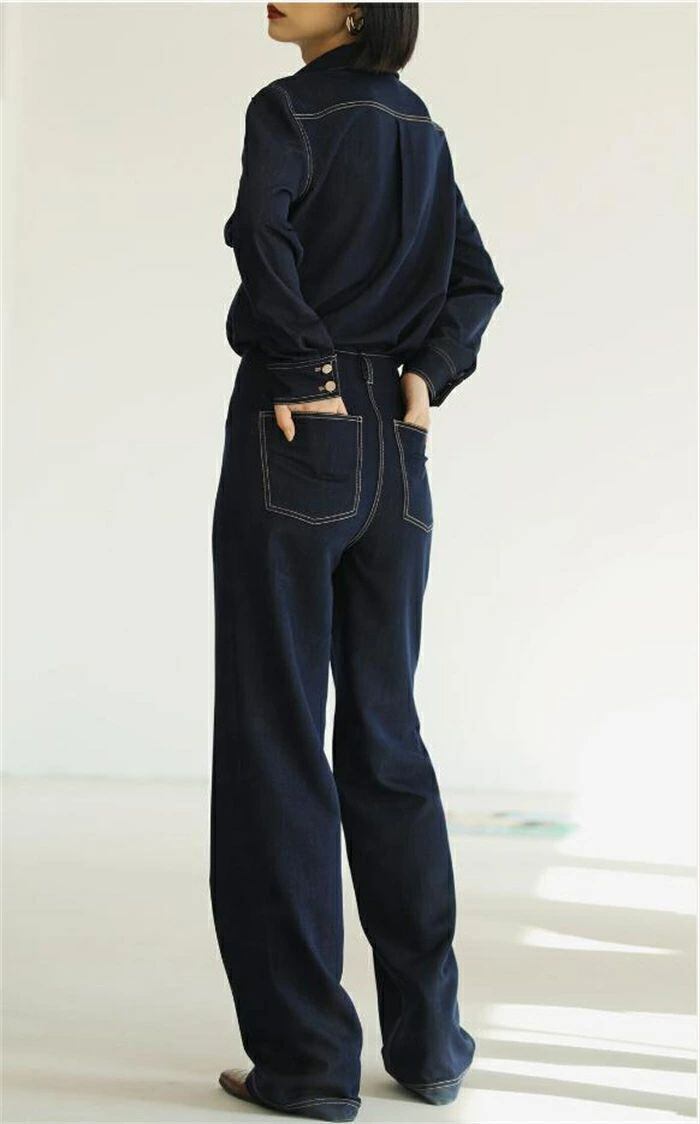 デニムセットアップ デニム レディース パンツセット上下セット 春 秋冬 長袖 アウター ジーンズ デニムジャケット 無地 トップス ボトムス ロング丈 前開き ワイドパンツ カジュアル ベーシック 普段着 おしゃれ ストリート かっこいい おしゃれ 体型カバー お出かけ 20代 30代 40代