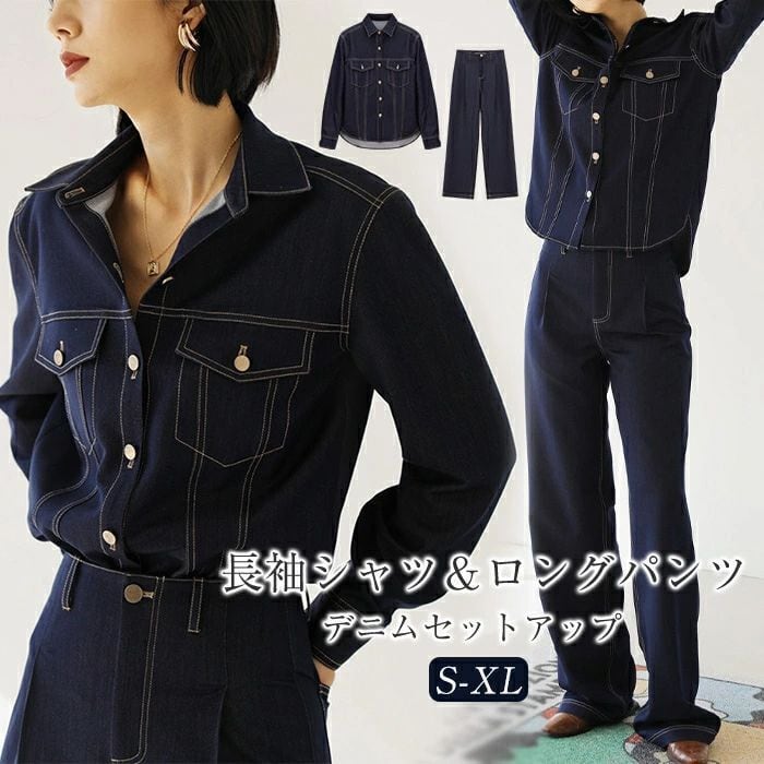 デニム セットアップ パンツ 長袖 レディース 大きいサイズ デニムジャケット デニムシャツ シャツジャケット アウター ジーンズ デニムパ