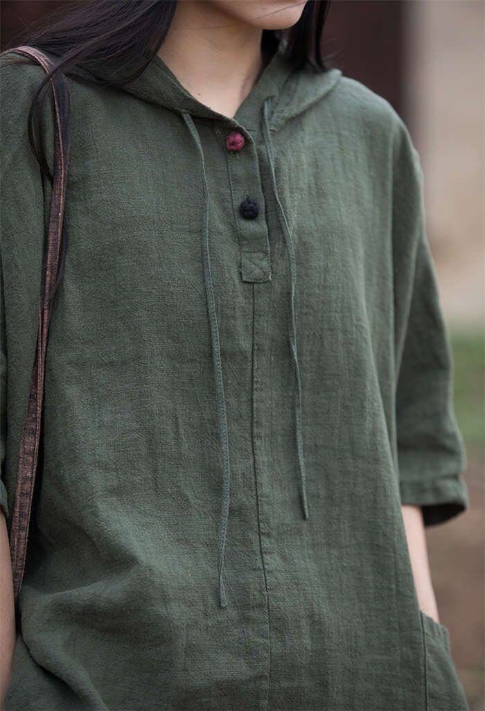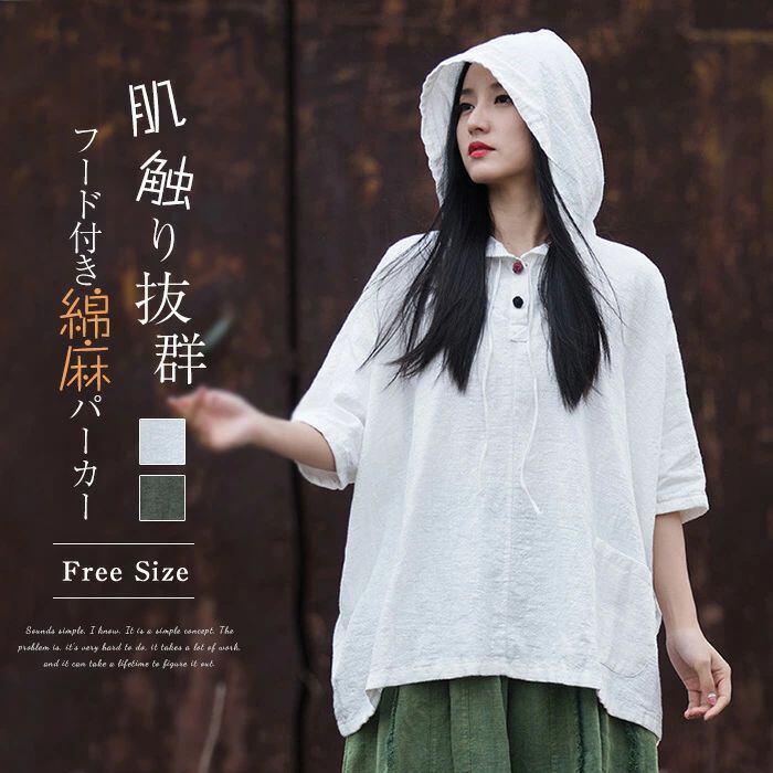 パーカー Tシャツ レディース サマーTシャツ 春夏 スウェット フードパーカー トップス 半袖パーカー 綿麻 コットンリネン プルオーバー 涼