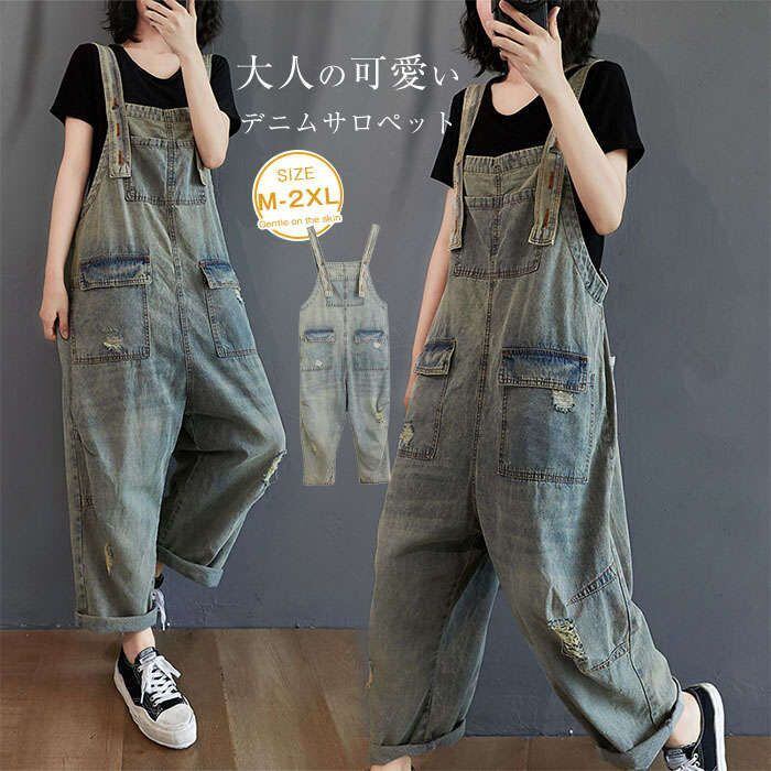 サロペット パンツ レディース 夏 サロペット オーバーオール 大人カジュアル サロペット レディース オールインワン デニムワイドパンツ 着やせ ロングパンツ ヴィンテージ風 ボトムス デニムパンツ レディース ジーンズ サロペットデニムパンツ オーバーオール デニム サロペット 夏 送料無料