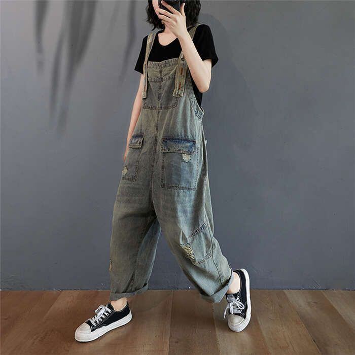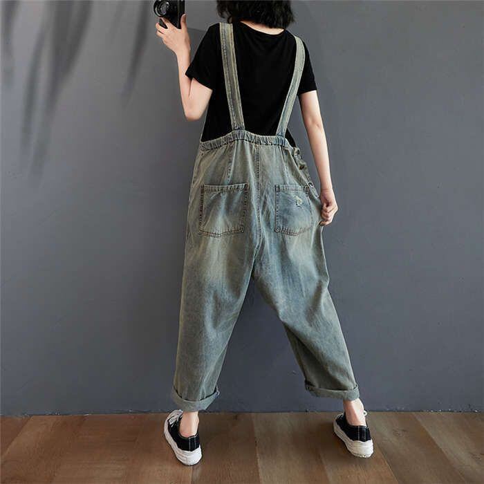 サロペット レディース オールインワン デニムワイドパンツ 着やせ ロングパンツ ヴィンテージ風 ボトムス デニムパンツ レディース ジーン