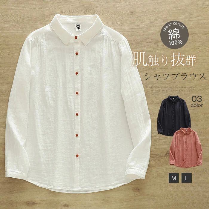 シャツ ダブルガーゼシャツ ガーゼシャツ レディース 綿100% 綿シャツ 白シャツ トップス ブラウス 無地 長袖 コットン アウター 綿 春 夏 秋 冬 オールシーズ レイヤード 前開き 大人可愛い 着回し カジュアル シンプル 柔らかい 森ガール ナチュラル 白 ホワイト 30代 40代 50代 上品 吸汗 送料無料