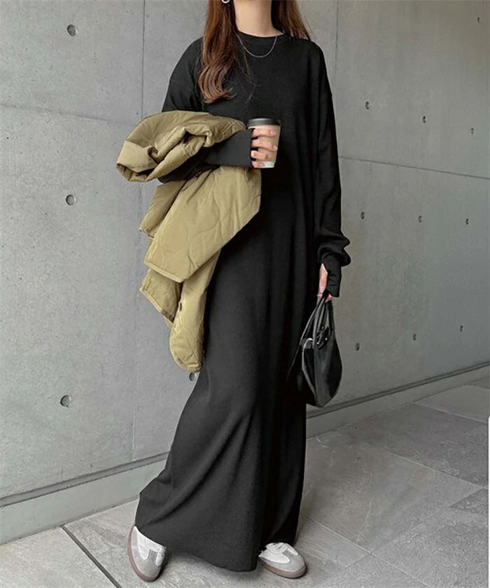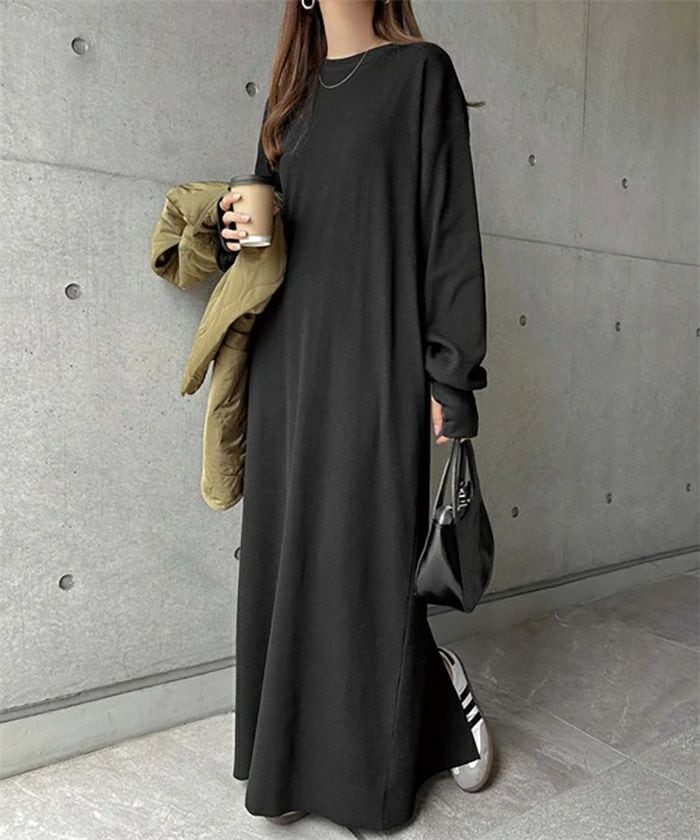 ワンピース レディース ロング ワンピース スウェット ワンピース カットソーワンピース ロング丈 トレーナー 長袖 春 秋 冬 パーカーワンピース 体型カバー 高見え 普段着 女子会 きれいめ ゆったり 大きいサイズ 無地 クルーネック ルームウェア 部屋着 リラックス 20代 30代 40代 50代 送料無料