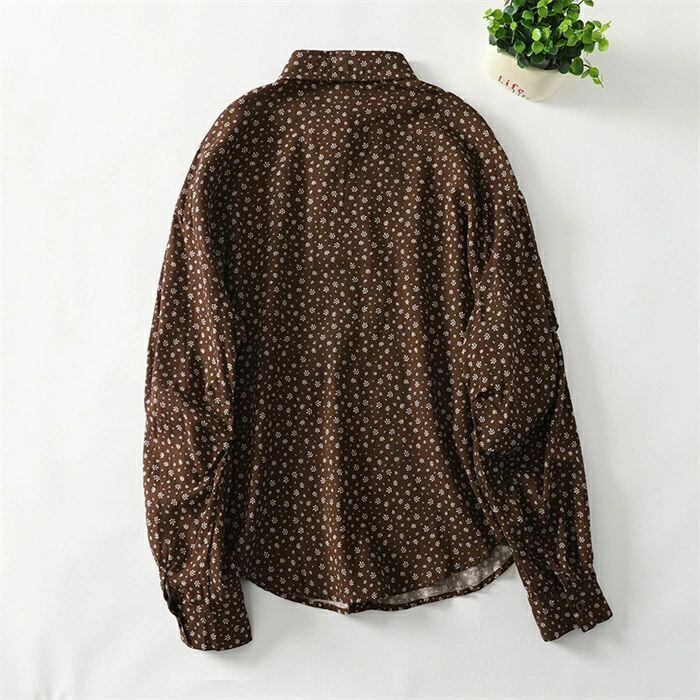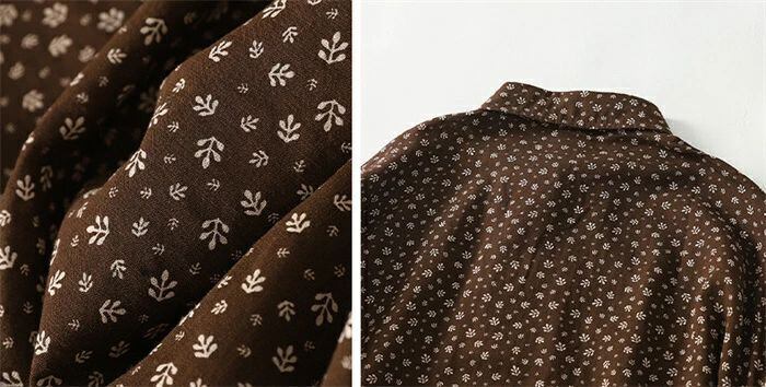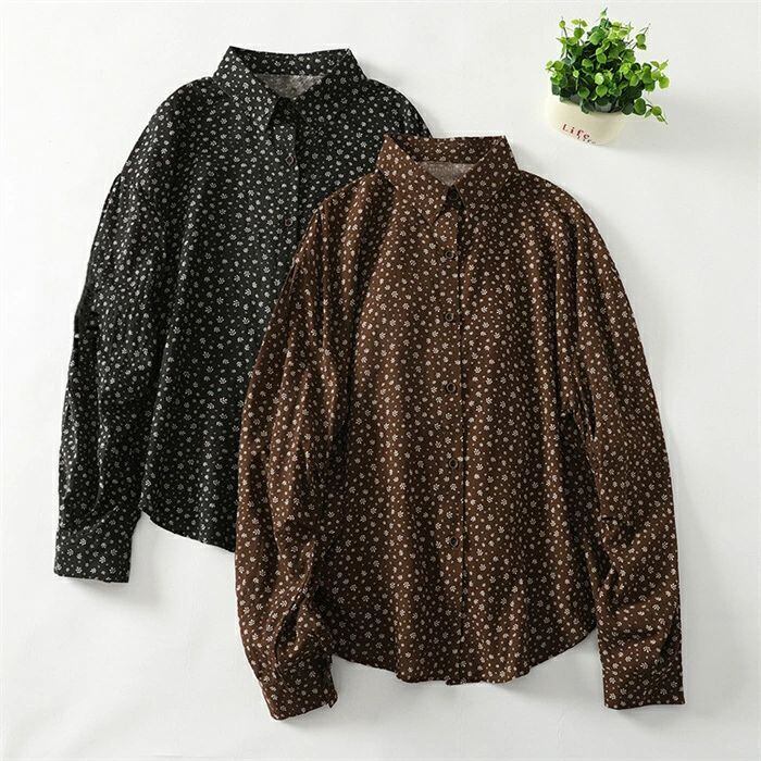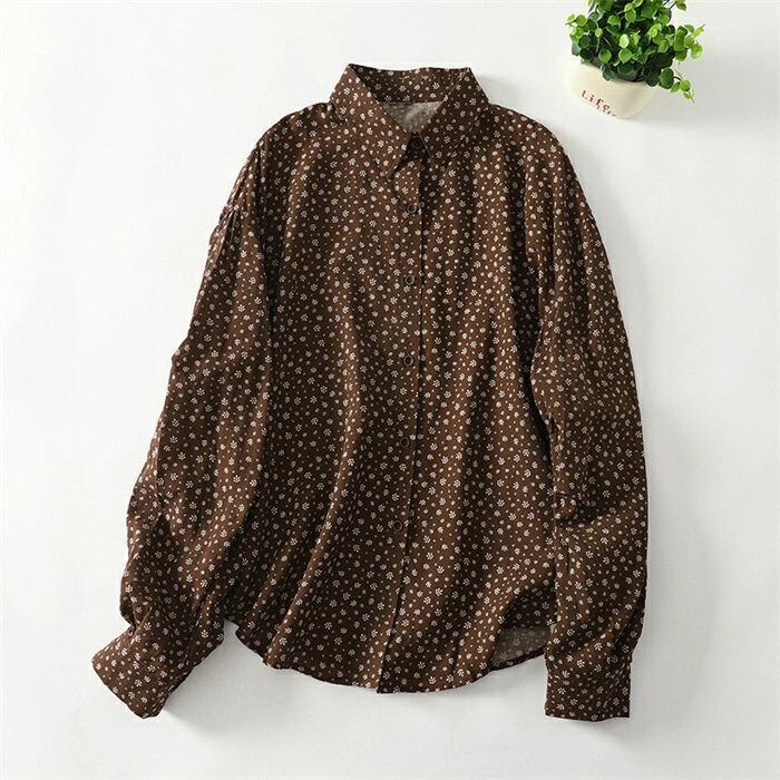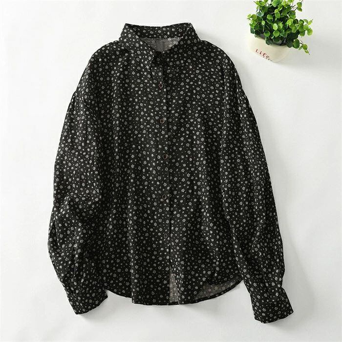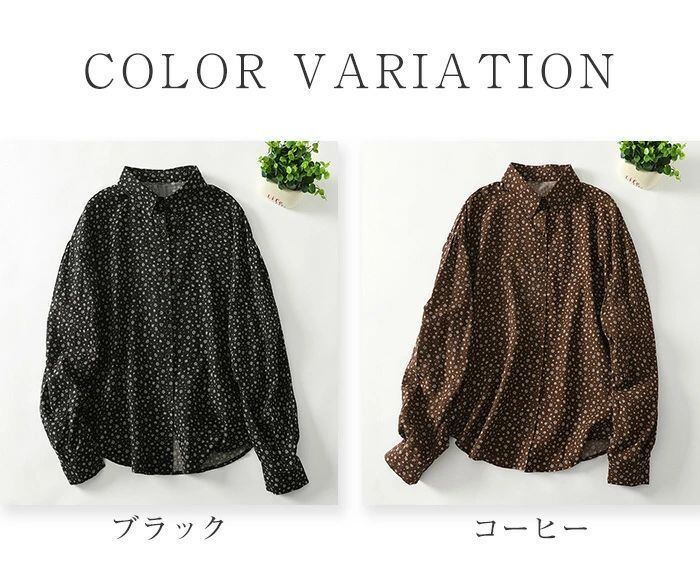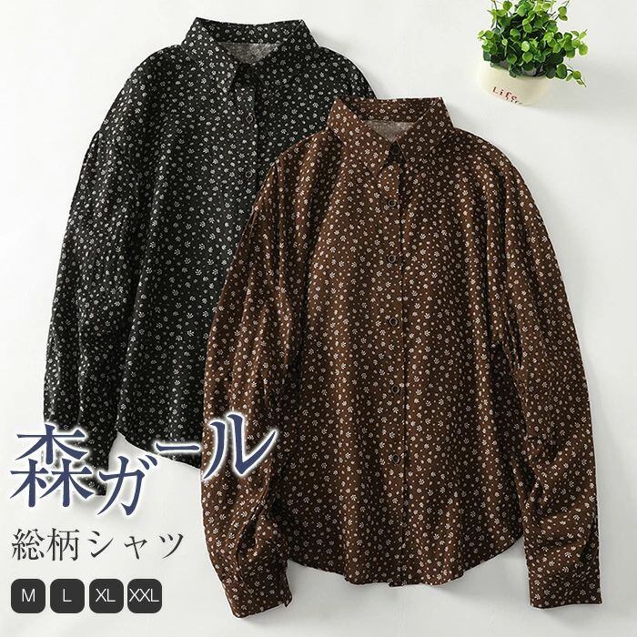 シャツ 総柄 綿麻シャツ レディース 春秋 ブラウス 長袖 シャツブラウス コットン リネン 綿麻 前開き 大きいサイズ ゆったり 可愛い 森ガ