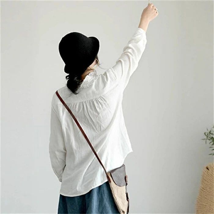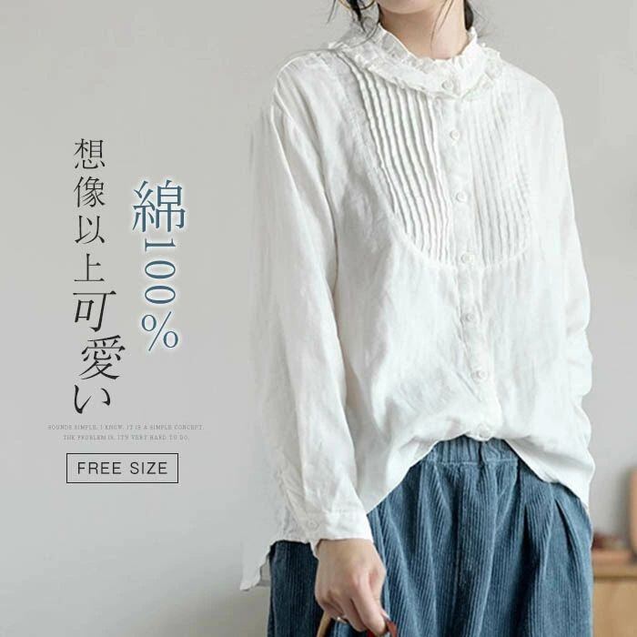 シャツ 綿100% フリル ガーゼシャツ レディース ブラウス 白シャツ ギャザー 綿シャツ 秋 コットン シャツブラウス 長袖 ダブルガーゼシャツ 可愛い インナー トップス 白 重ね着 オフィス ナチュラル ゆったり おしゃれ きれいめ 仕事 通勤 OL 森ガール ホワイト 20代 30代 40代 50代 上品 吸汗 送料無料