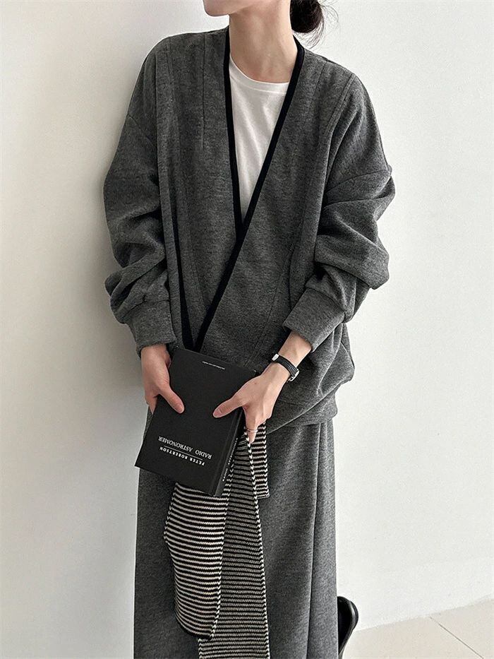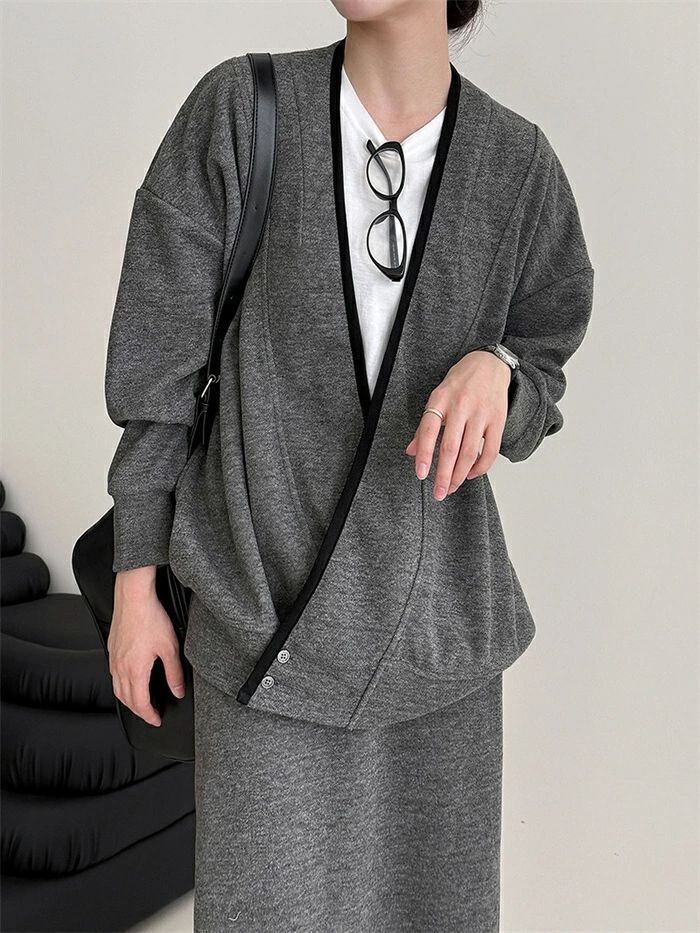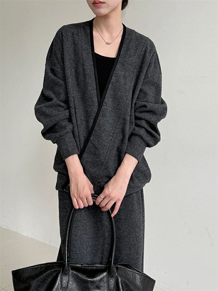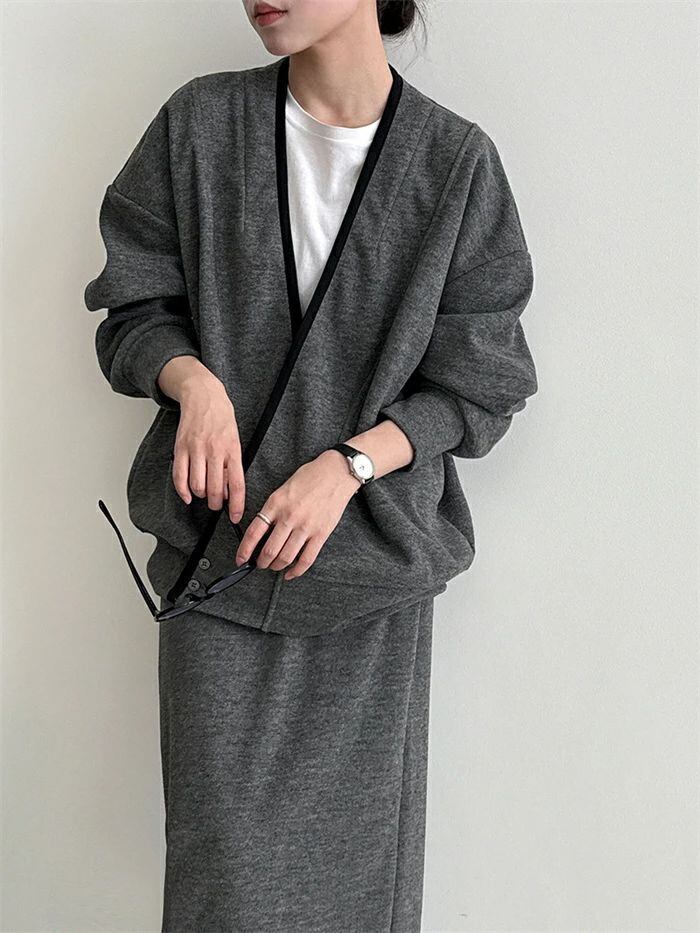 スカートニットカーディガンケーブルカーディガンリブカーディガンスーツセ