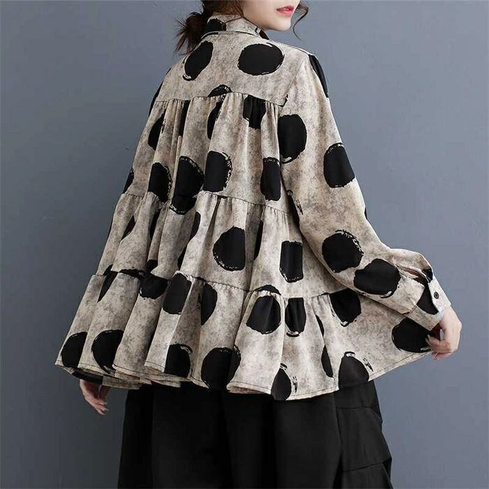シャツ ドット柄 レディース 春秋 シャツブラウス フリル 長袖 ブラウス 可愛い 水玉柄 前開き トップス 重ね着 ゆったり 体型カバー 着?せ 大人可愛い 大人 オフィス 通勤OL レトロ 20代 30代 40代 50代 送料無料