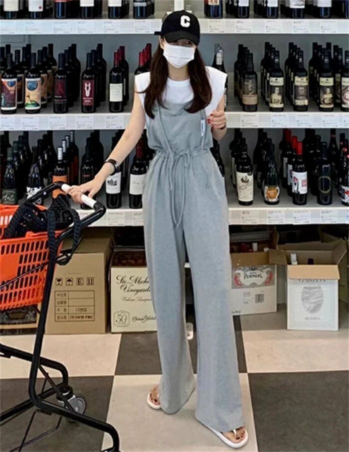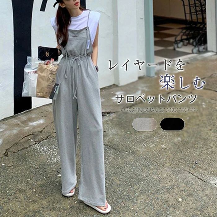 サロペット パンツ レディース ロング ワイパンツ 春 夏 秋 ノースリーブ オールインワン ロング丈 無地 ロングパンツ ワイドパンツ 楽ちん シンプル リラックス 高見え オフィス カジュアル スウェット ウエストマーク リボン 重ね着 レイヤード 黒 ブラック グレー レディース サロペットパンツ オールインワン サロペット オールインワン オーバーオール ガウチョパンツ ゆったりめ ロングパンツ 春コーディ 夏コーディ カジュアル 夏 夏服