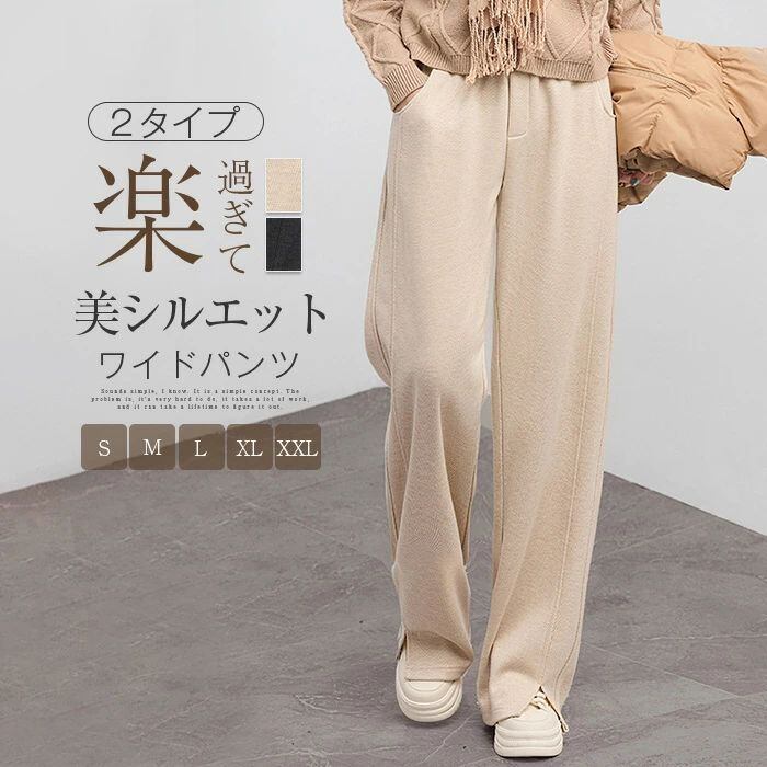裏起毛 パンツ ワイドパンツ レディース 秋冬 ロングパンツ ガウチョパンツ ロング丈 ワイド イージーパンツ 楽ちん ボトムス ズボン ウエストゴム オフィス ハイウエスト 無地 スリット 大きいサイズ ゆったり 体型カバー 着?せ 美脚 通勤OL カジュアル シンプル 20代 30代 40代 50代