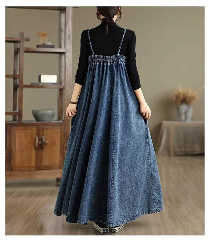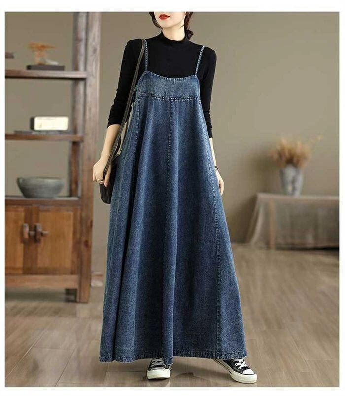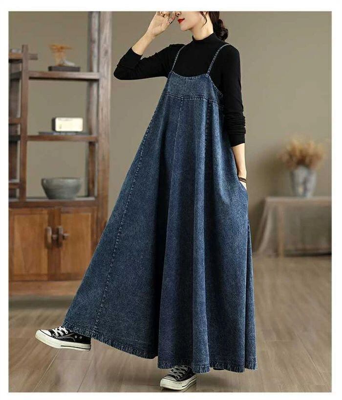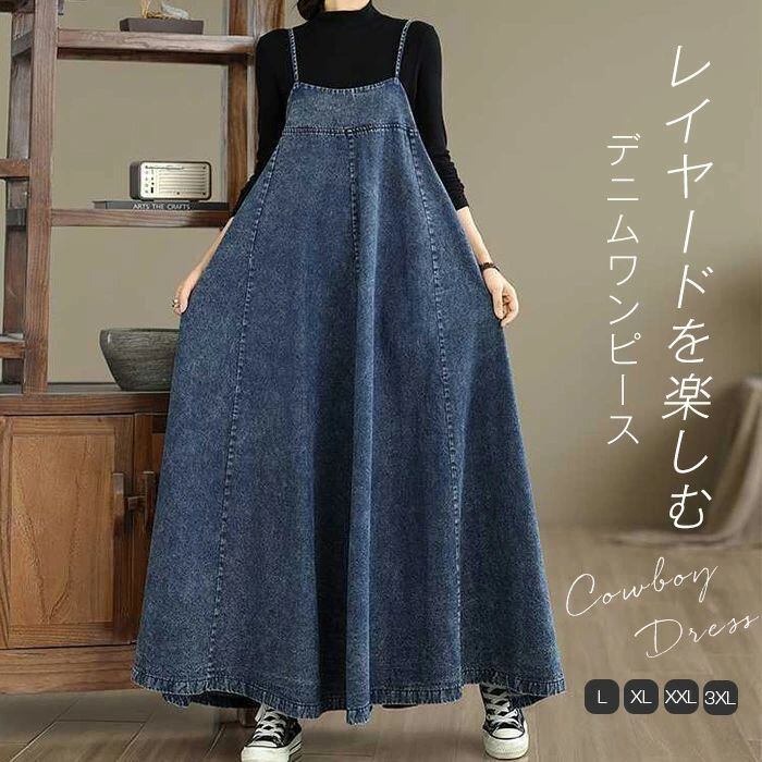 ジャンパースカート サロペット ワンピース レディース デニム ワンピース aライン オーバーオール オールインワン ロング丈 ノースリーブ 体型カバー ロング ワンピース 春 秋 冬 ゆったり シンプル ロングワンピ 着痩せ カジュアル 大きいサイズ 重ね着 送料無料 ロングワンピ シンプル 大きいサイズ カジュアル 20代 30代 40代 50代 体型カバー カジュアル トレンド レイヤード ブルー