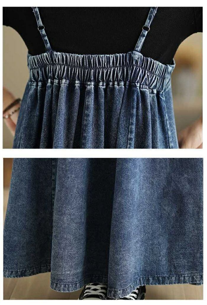 スママワンピース刺繍ワンピースデニムワンピース重ね着風ワンピースリネ