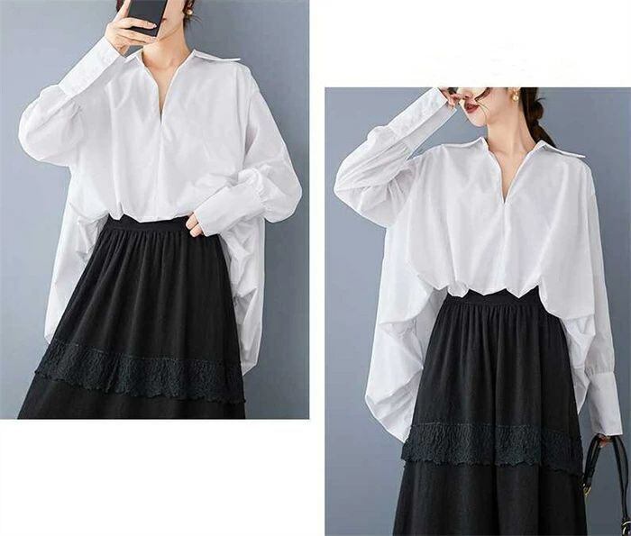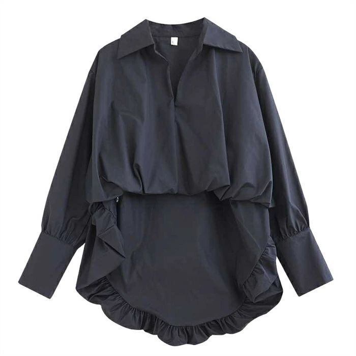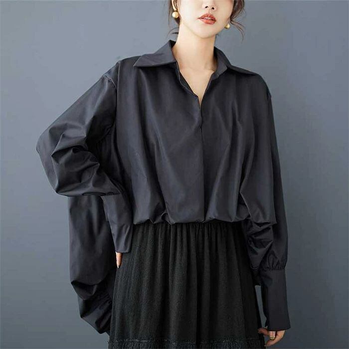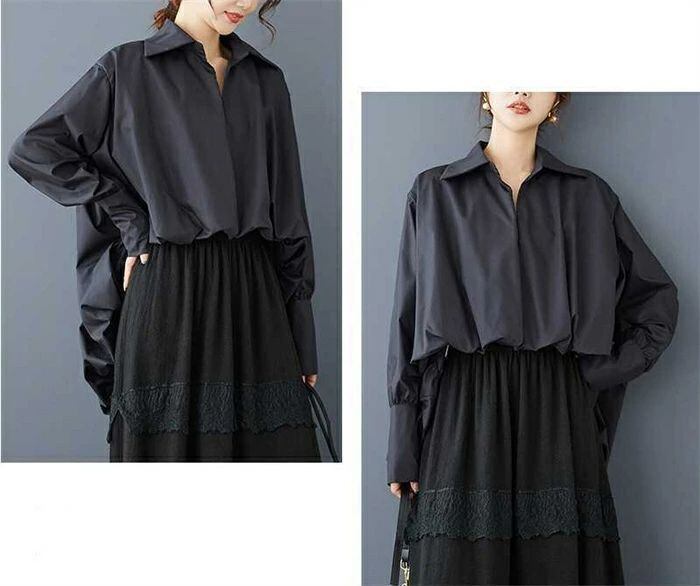 シャツ ダブルシャツ レディース 春秋 シャツブラウス 長袖 ダブル ギャザー ブラウス 切り替えシャツ 切り替え モード プルオーバー 無地