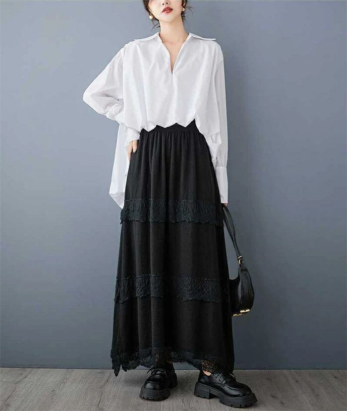 ト無地スカート綿麻混スカートプリーツスカートリネンスカートサロペット