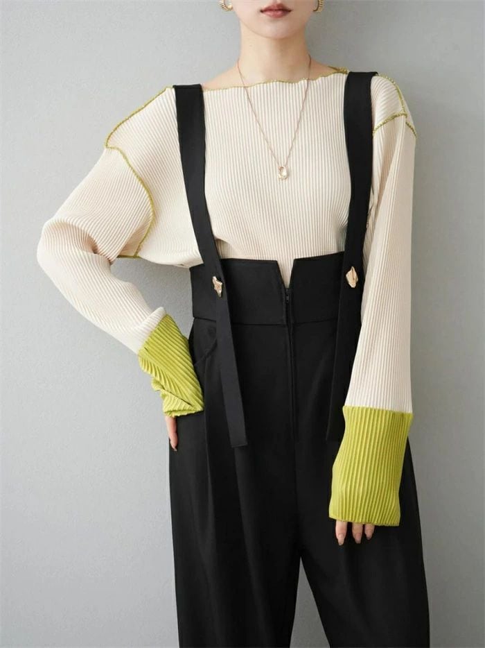 派手個性的カジュアル着痩せ清楚セクシーシースルーバイカラー膝丈