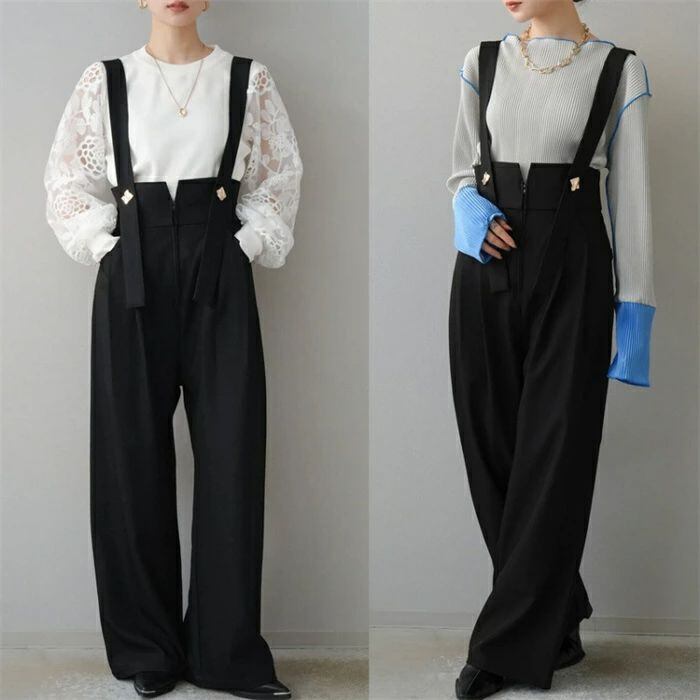 オールインワン サロペット パンツ レディース 大人 サロペットパンツ パンツドレス オーバーサイズ オーバーオール ワイドパンツ ガウチョ
