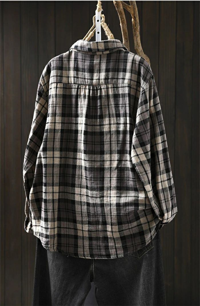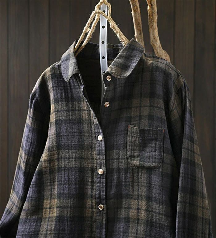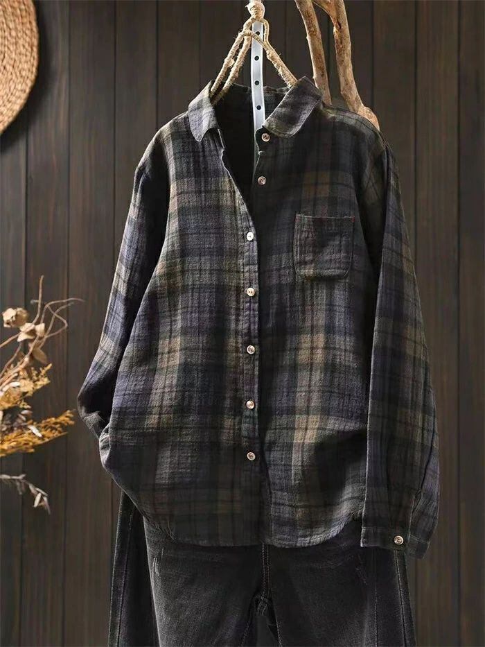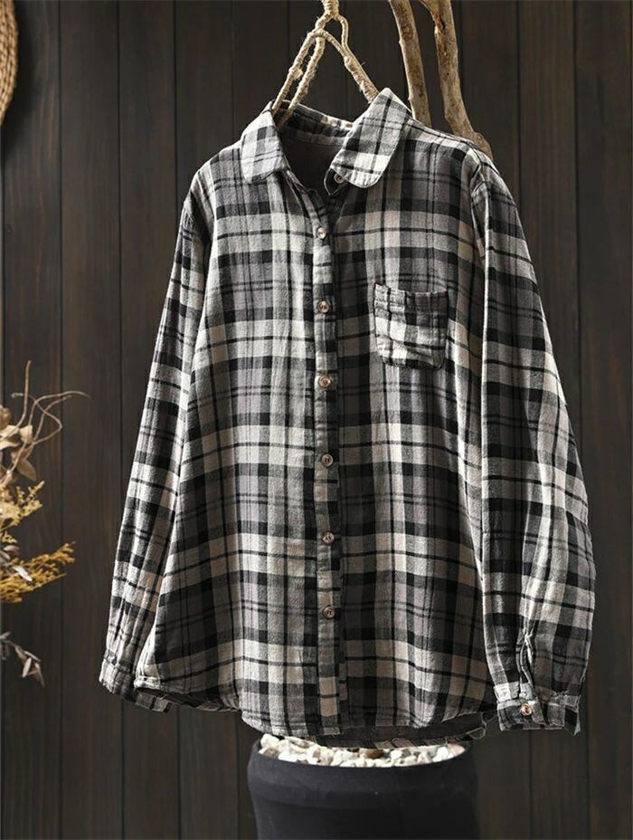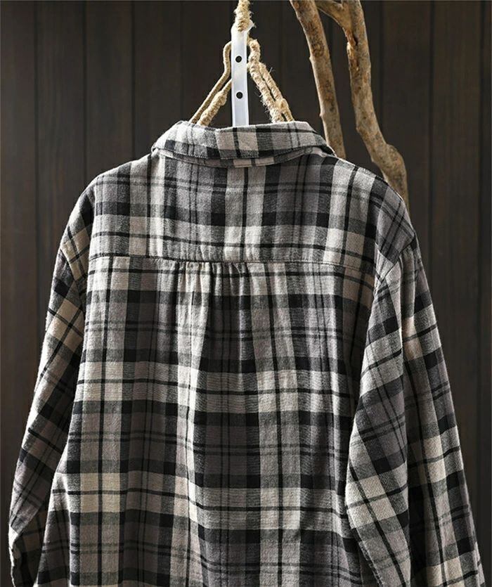 シャツ 綿シャツ ガーゼシャツ チェックシャツ レディース 春秋 綿100% シャツブラウス ブラウス チェック柄 ダブルガーゼ 長袖 コットン トップス 綿 ダブルガーゼシャツ ナチュラル ゆったり 体型カバー 大人 お洒落 シンプル カジュアル オフィス 通勤OL 通学