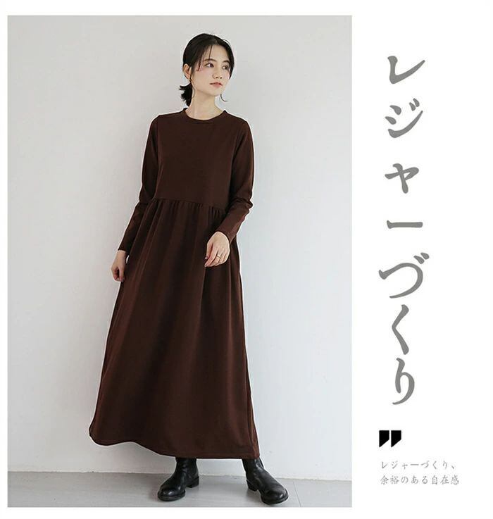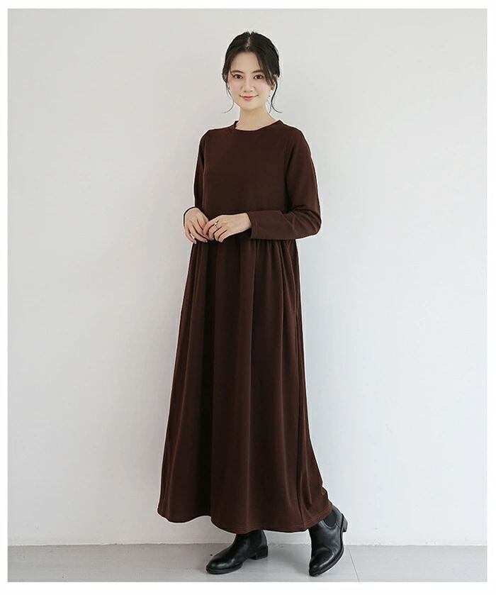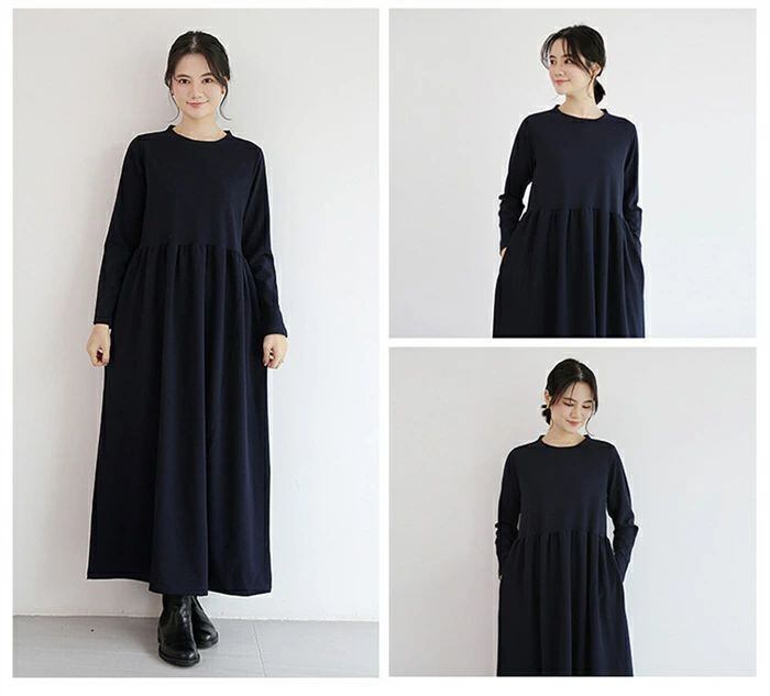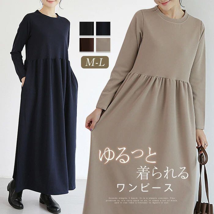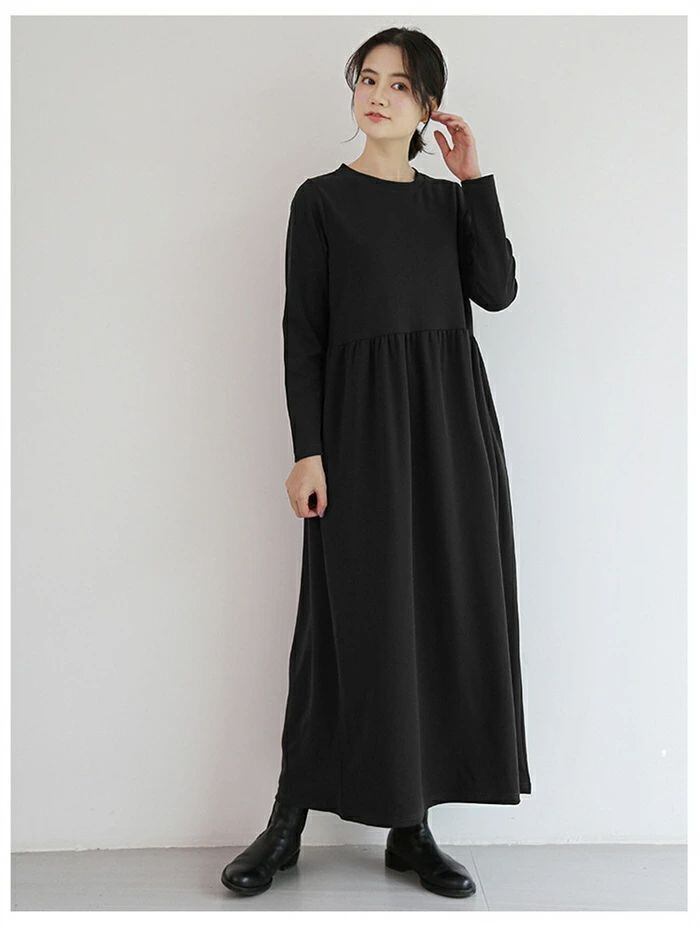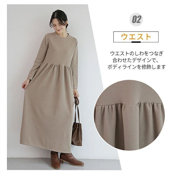 ワンピース ロングワンピース レディース ワンピ ロング丈 長袖 マキシワンピース 春 秋 クルーネック マキシ Aライン フレア 無地 ロング