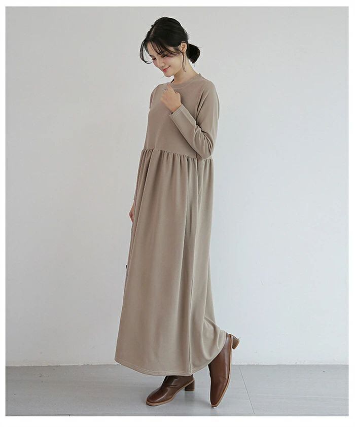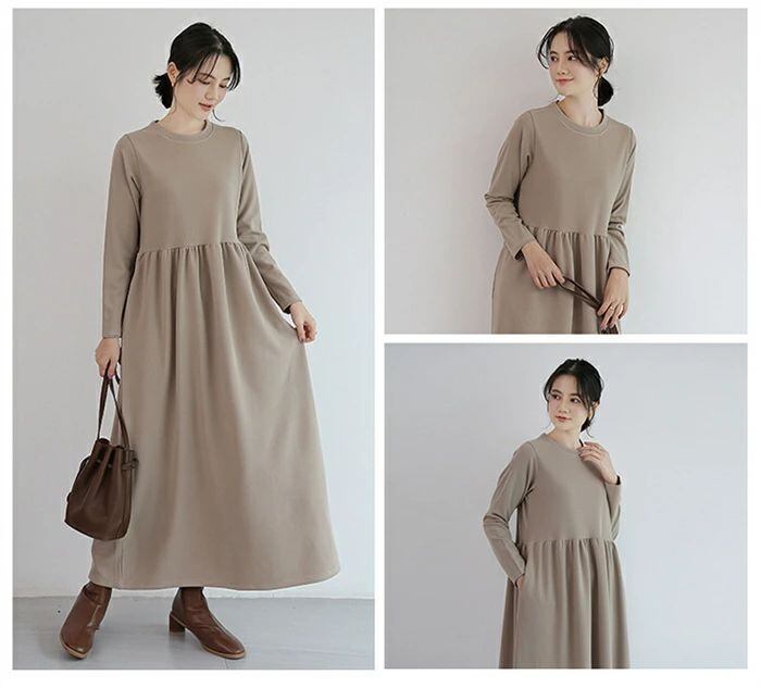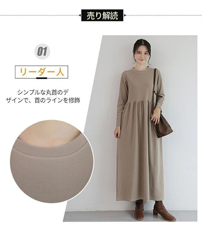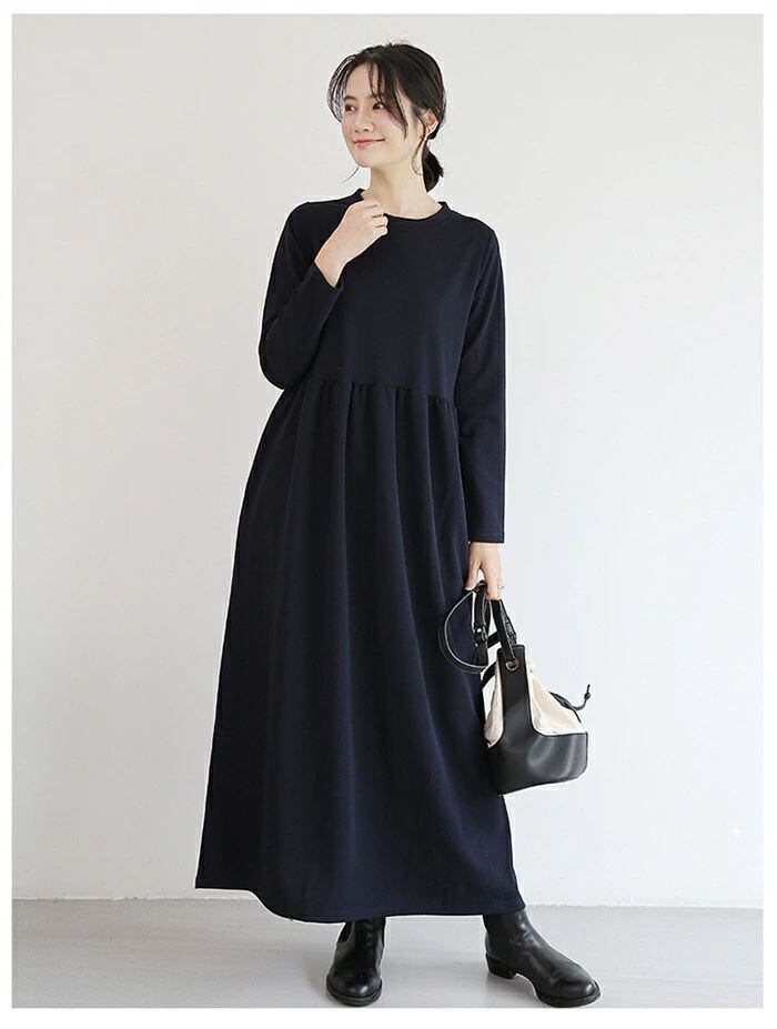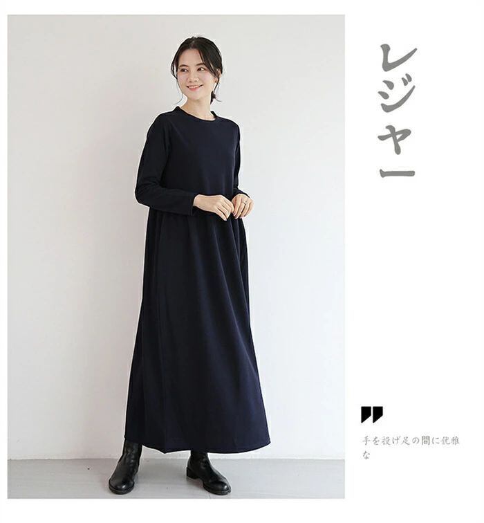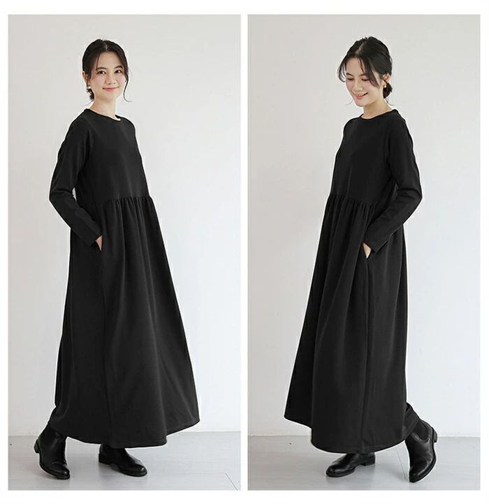 ワンピース ロングワンピース レディース ワンピ ロング丈 長袖 マキシワンピース 春 秋 クルーネック マキシ Aライン フレア 無地 ロング