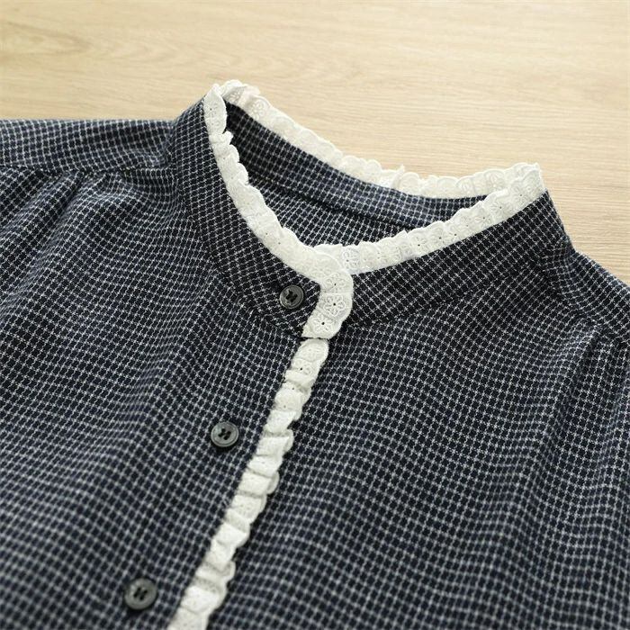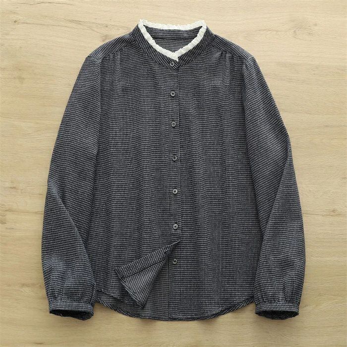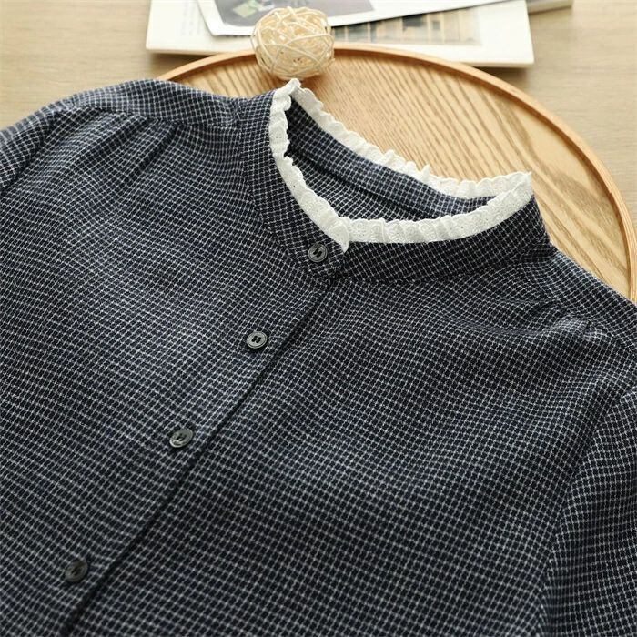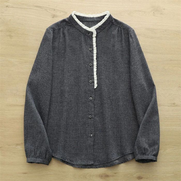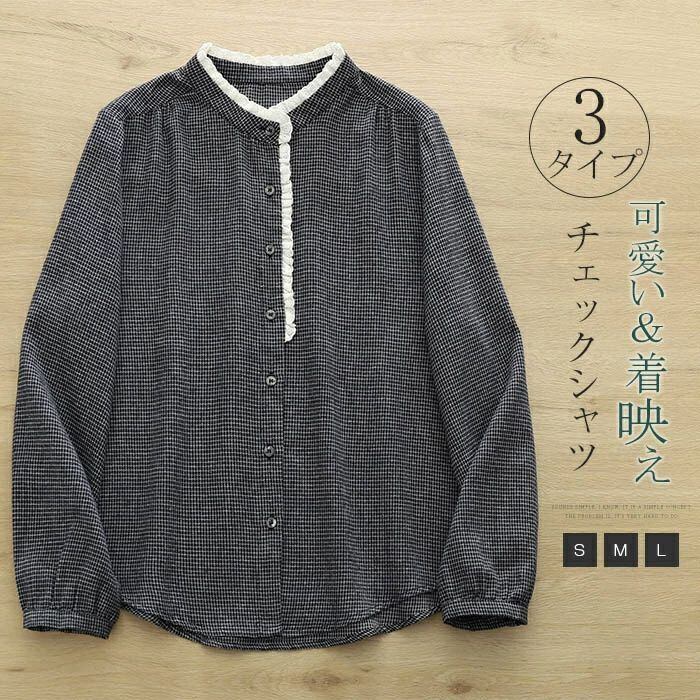 シャツ チェックシャツ レディース ブラウス 長袖 チェック柄 シャツブラウス 秋 立ち襟 切り替えシャツ トップス 切り替え コットン 可愛い 森ガール重ね着 ナチュラル 通勤OL 通学 オフィス フォーマル カジュアル シンプル 森ガール 女性 20代 30代 40代 50代