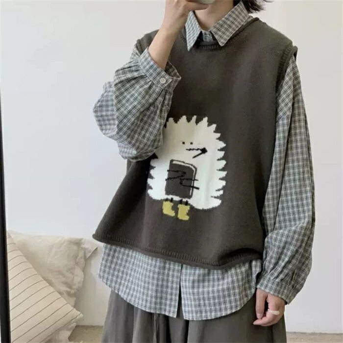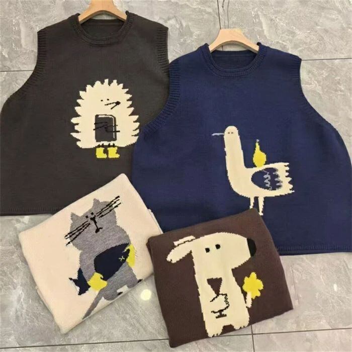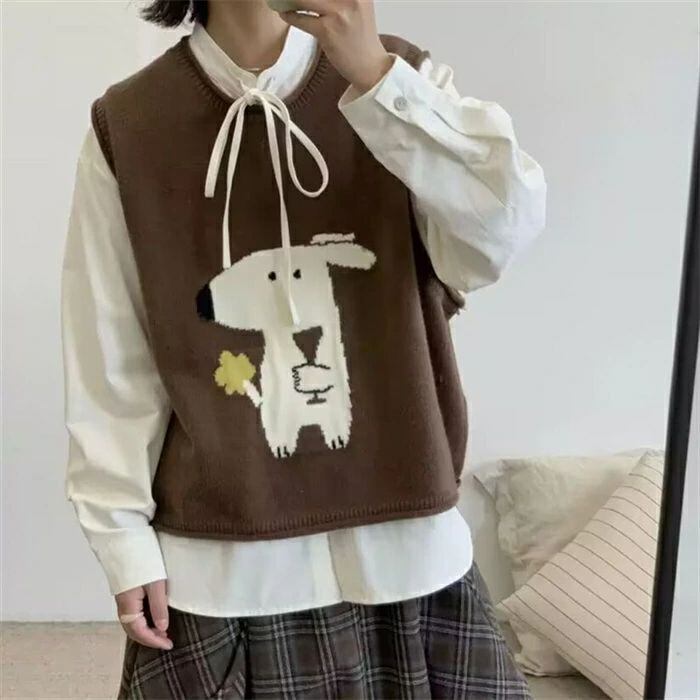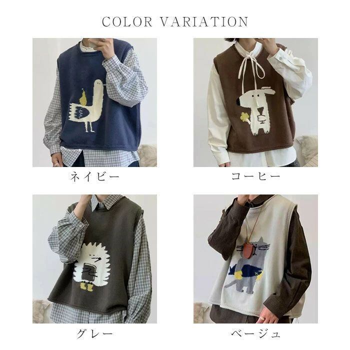 ニット ベスト レディース 春秋冬 ニットベスト 可愛い 動物柄 猫柄 犬柄 トップス ノースリーブ クルーネック 丸首 レイヤード 重ね着 ゆったり 森ガール 柔らかい ルームウェア お出かけ カジュアル シンプル 重ね着 定番 通勤 通学 20代 30代 40代 50代
