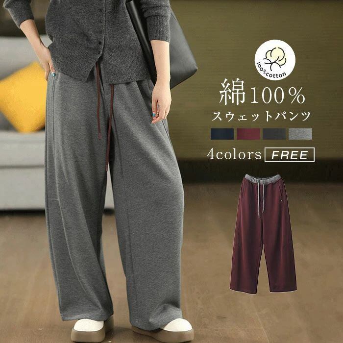 パンツ ワイドパンツ 綿100% レディース スウェット カーブパンツ カットソー スウェットパンツ ロングパンツ ガウチョパンツ イージーパ