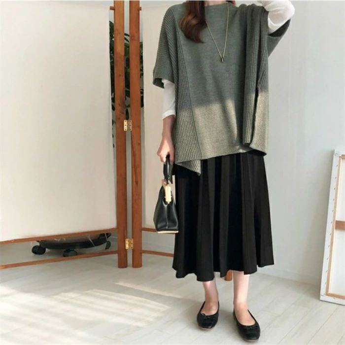 ト無地スカート綿麻混スカートプリーツスカートリネンスカートサロペット