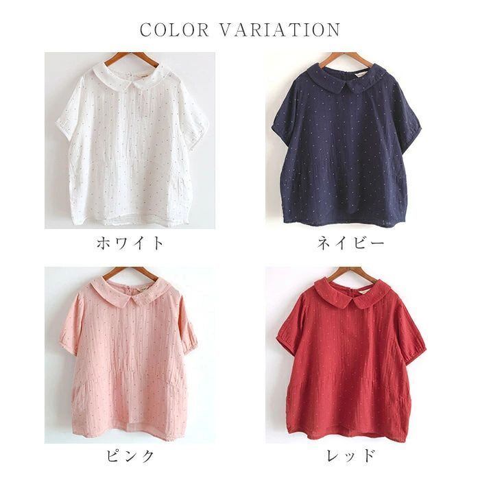 長袖追加 ガーゼ シャツ レディース 半袖 2重ガーゼ シャツブラウス 夏 春夏 ダブルガーゼ 綿100% ガーゼシャツ プルオーバー トップス 襟