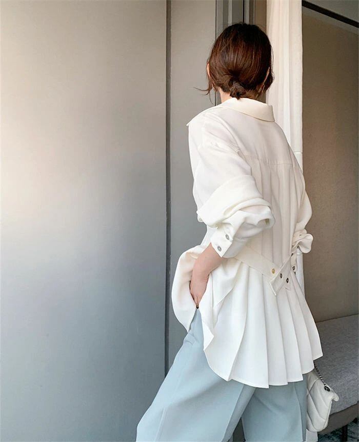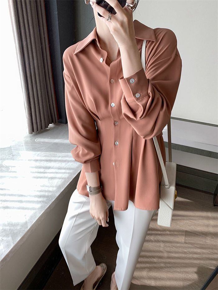 長袖 シャツ ブラウス レディース 春 秋 プリーツ シャツ レディース ペプラム チュニック バックプリーツ 長袖 襟付き 長袖シャツ 無地 ボリューム袖 ブラウス シフォン トップス ゆったり フレア シャツブラウス 上品 カジュアル シフォンシャツ おしゃれ オフィス きれいめ 大人 春 夏 秋 OL 通勤 送料無料オフィス 通勤 OL デザイン感 おしゃれ 大人 春 秋 カジュアル エレガント 可愛い 体型カバ 30代 50代 40代 送料無料