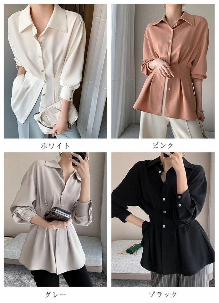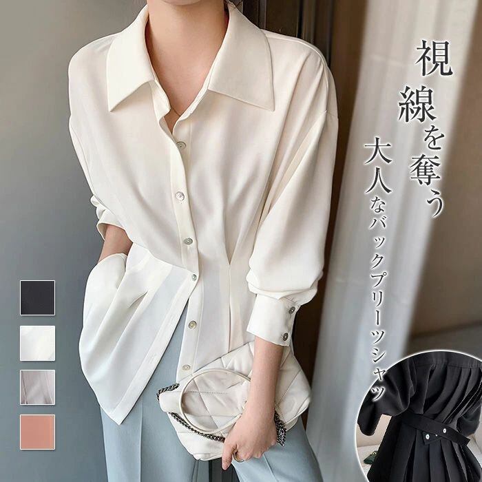 シフォン シャツ レディース ペプラム チュニック バックプリーツ 長袖 襟付き 長袖シャツ 無地 プリーツ ブラウス シフォン トップス ゆっ