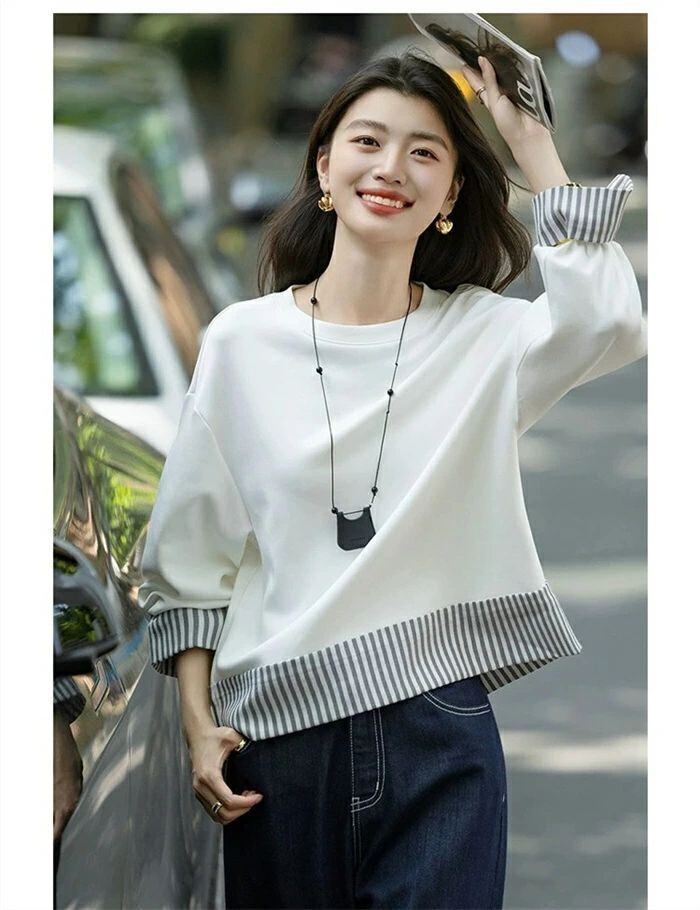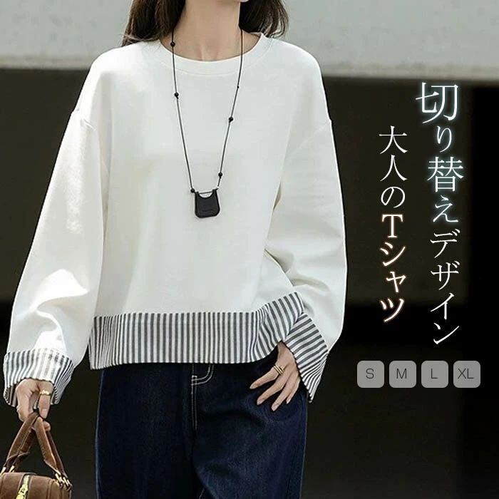 tシャツ トレーナー レディース トップス 長袖 クルーネック きれいめ 切り替え tシャツ プルオーバー カットソー ビッグ ゆる チュニック