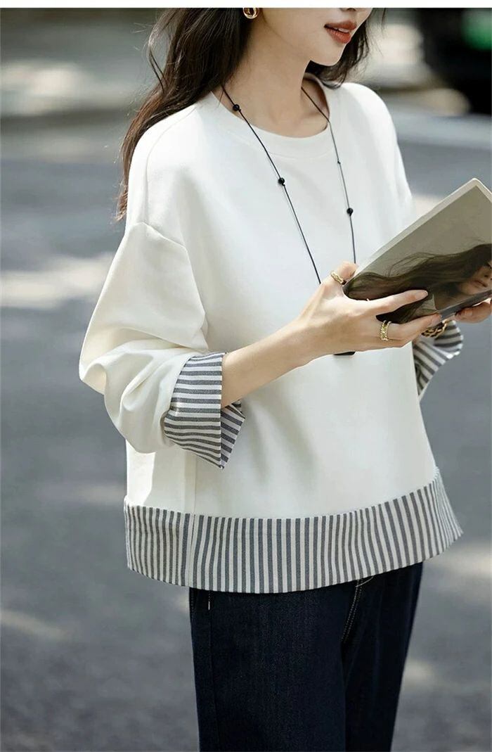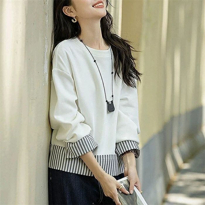 tシャツ トレーナー レディース トップス 長袖 クルーネック きれいめ 切り替え tシャツ プルオーバー カットソー ビッグ ゆる チュニック丈 ベーシック ルーズ 大きいサイズ インナー 綿 コットン ゆる感 秋 冬 春 こなれ感 大人 カジュアル 通勤 OL 送料無料 こなれ感 送料無料 カジュアル オフィス ナチュラル 定番 可愛い
