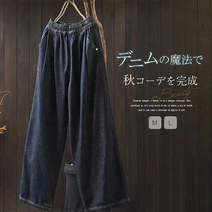 デニム パンツ ボトムス レディース ワイドパンツ ハイウエスト 股上深め カーブパンツ ガウチョパンツ ボトムス パンツ 美シルエット ロング パンツ ゆったり 長ズボン 無地 シンプル スラックス 落ち感 オーバーサイズ ウエストゴム 体型カバー 着痩せ 春 秋 送料無料 落ち感 オーバーサイズ スカーチョ きれいめ 落ち感 フェミニン 通勤 OL