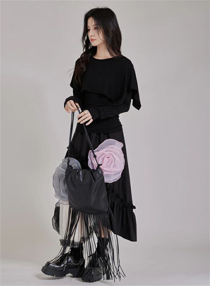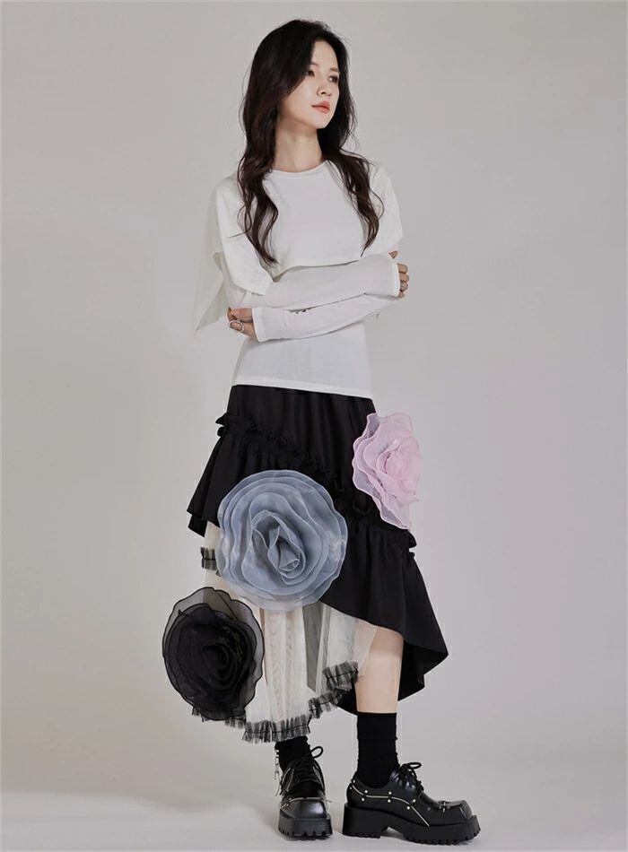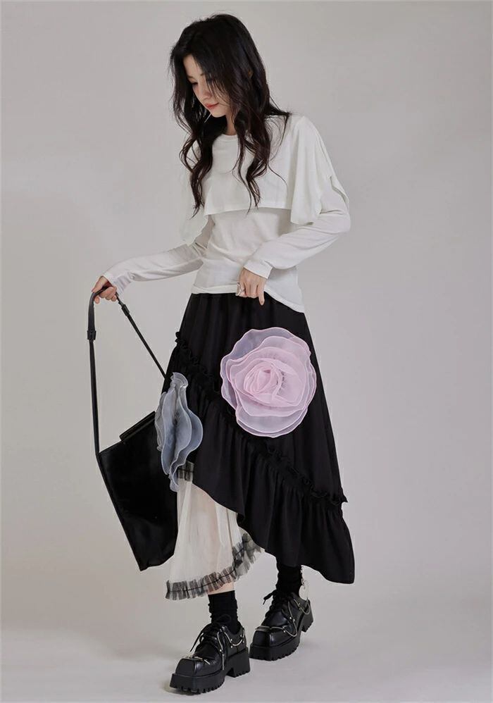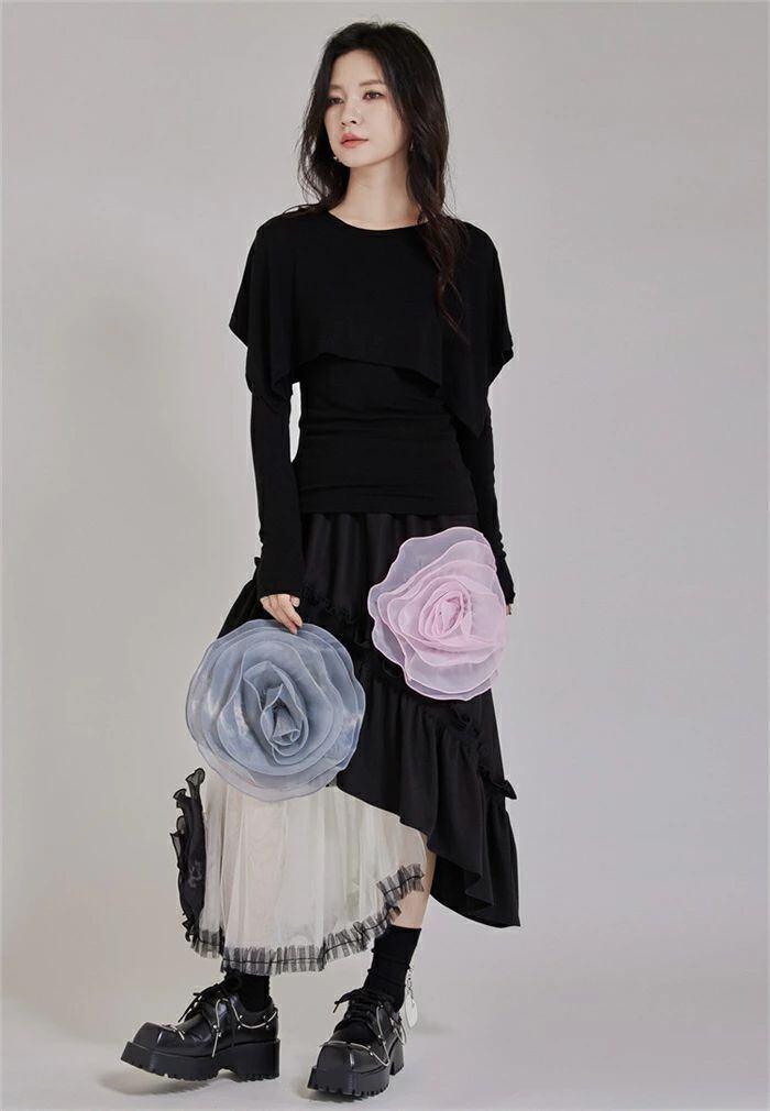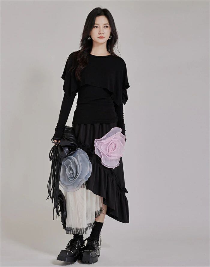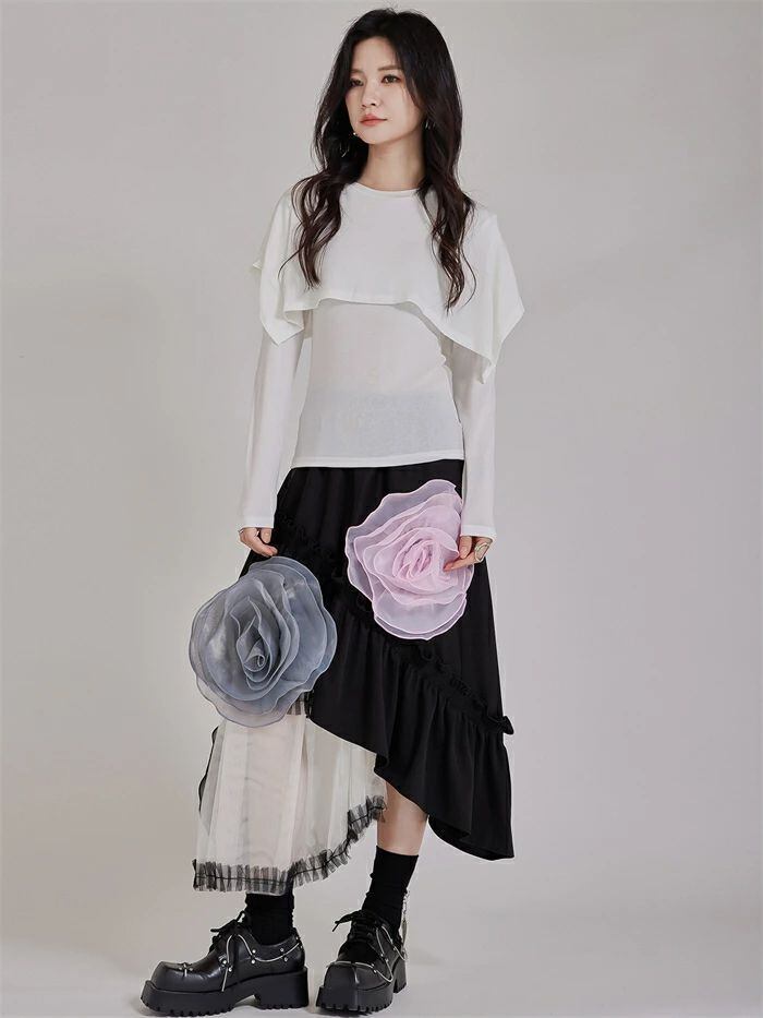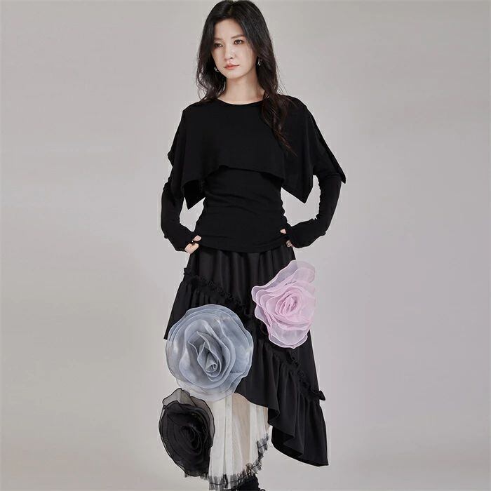 膝下切り替え切替ハイウエストアシンメトリースキッパードルマンギ