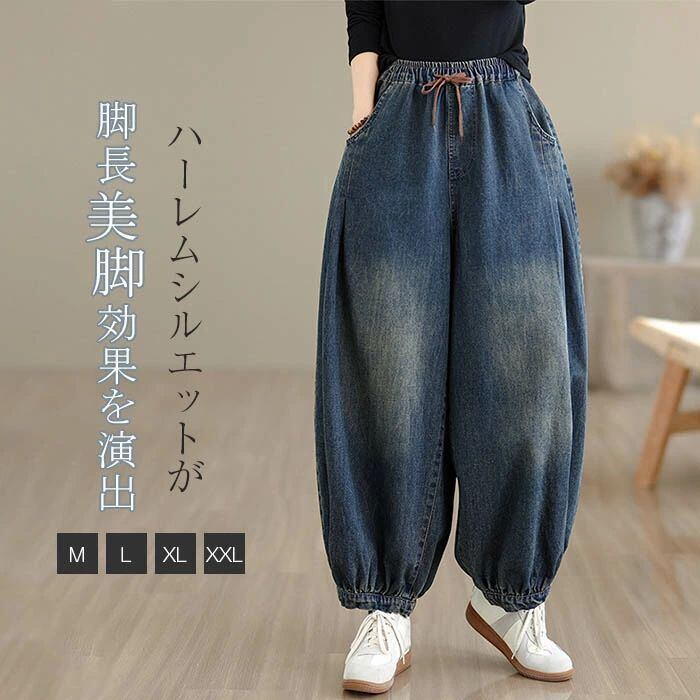 デニム パンツ バルーンパンツ ワイドパンツ ロング丈 レディース デニムパンツ サーカスパンツ 大きいサイズ ゆったり ウエストゴム コクーンパンツ ガウチョパンツ ジーンズ ゆったり ボトムス ワイド デニム 春 秋 冬 カジュアル ズボン 大きいサイズ 体型カバー ジーパン おしゃれ お腹 太もも お尻 通勤 美脚 細見え ガウチョパンツ スカーチョ きれいめ 落ち感 フェミニン 通勤 OL