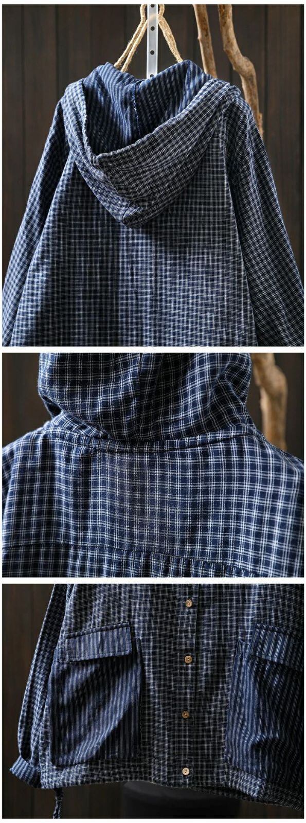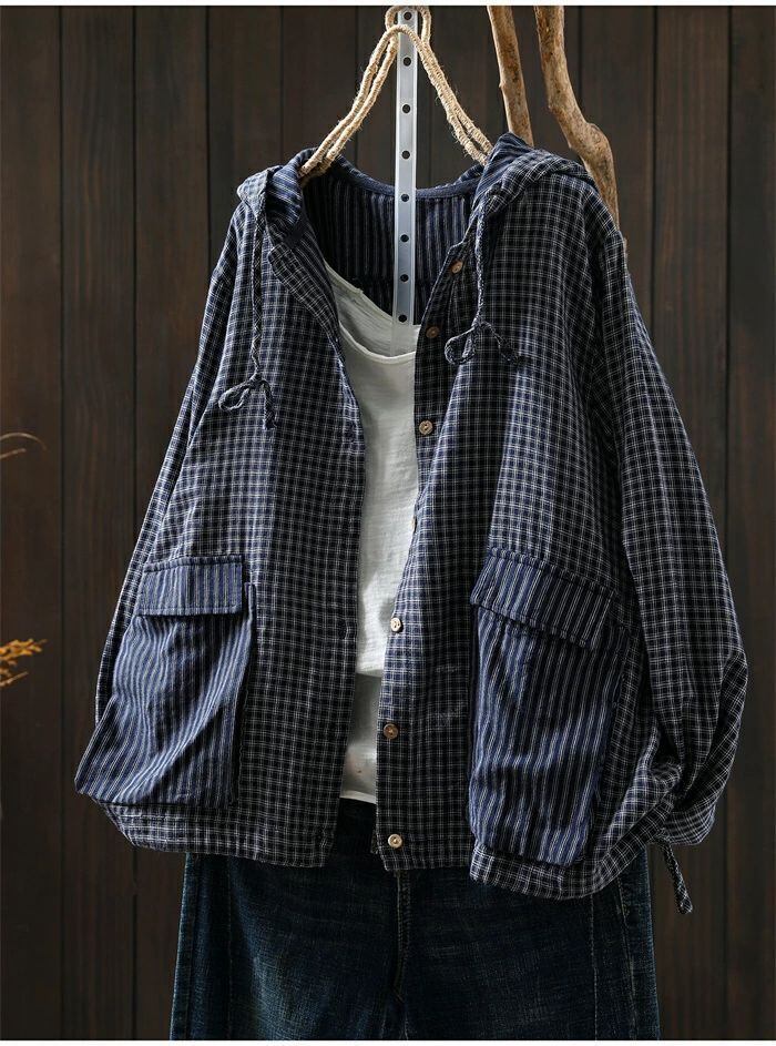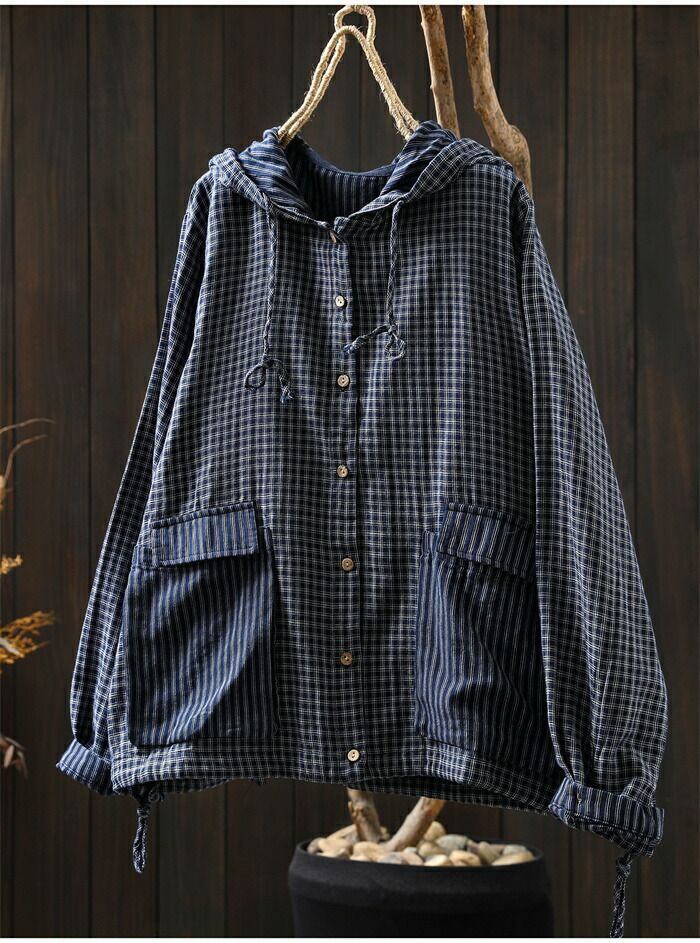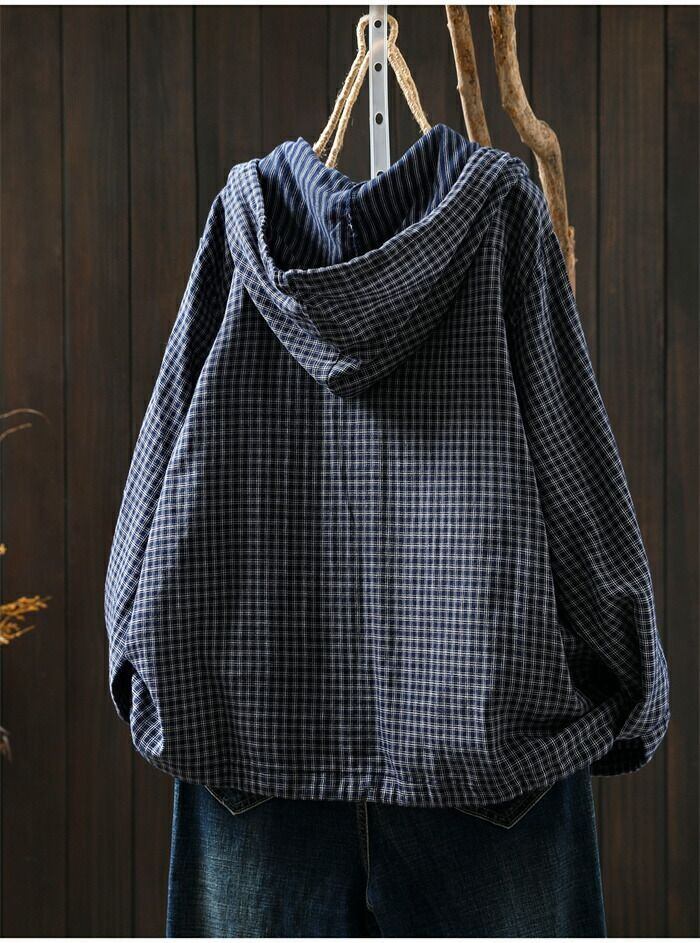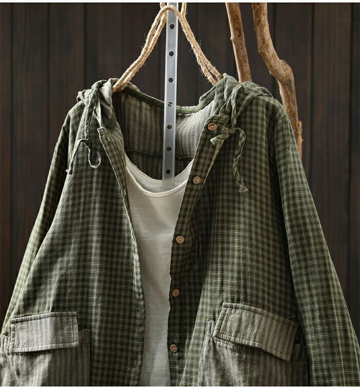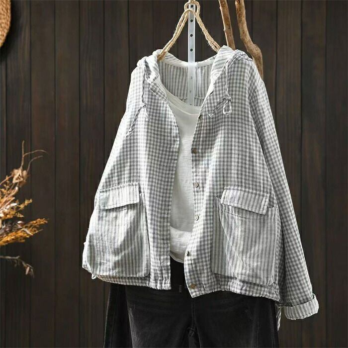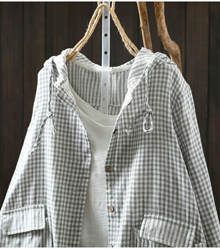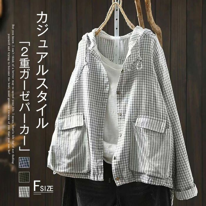 パーカー チェック柄 コットン 綿 ライトアウター レディース 長袖 カーディガン フード付き トップス ガーゼ 羽織 前開き 綿パーカー 大きいサイズ 柔らかい ゆったり 薄手 ナチュラル カジュアル トップス ジャケット カジュアル 通勤 体型カバー シンプル 春 秋 新作 通勤 体型カバー ゆったり 綿100% ガーゼコットン シンプル 春 秋 着回し 30代 40代 50代 送料無料