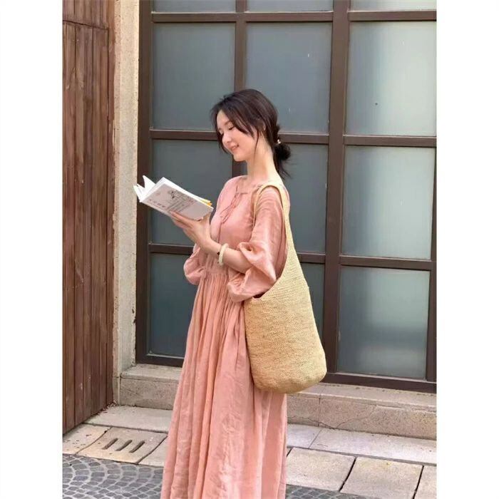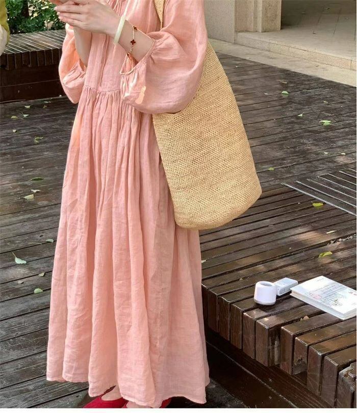 ト無地スカート綿麻混スカートプリーツスカートリネンスカートサロペット