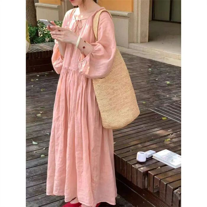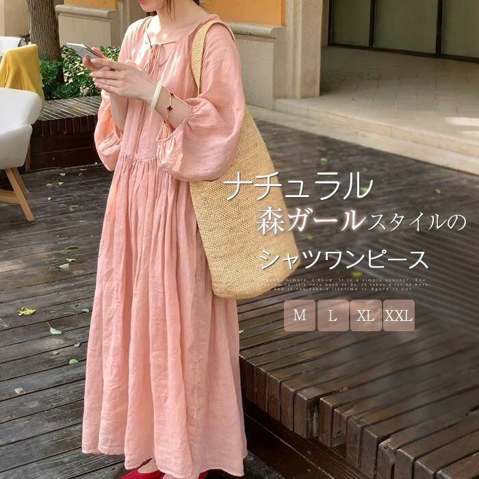ワンピース ロング レディース シャツワンピース ロング ワンピース 前後両面着 長袖 シャツワンピ カジュアル プルオーバー リボン 春 秋 新作 体型カバー ゆったり 可愛い 着痩せ 大きいサイズ カジュアル レトロ 通勤 お洒落 森ガール 20代 30代 40代 50代 送料無料