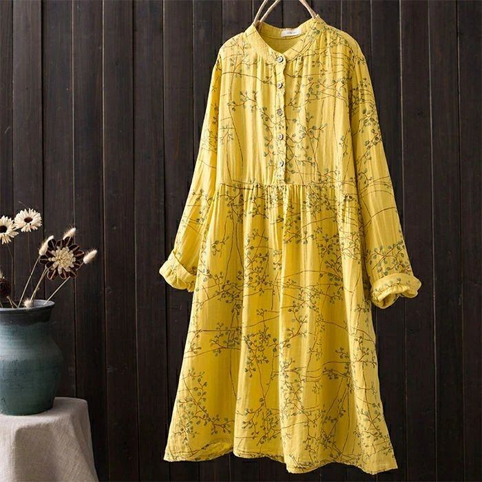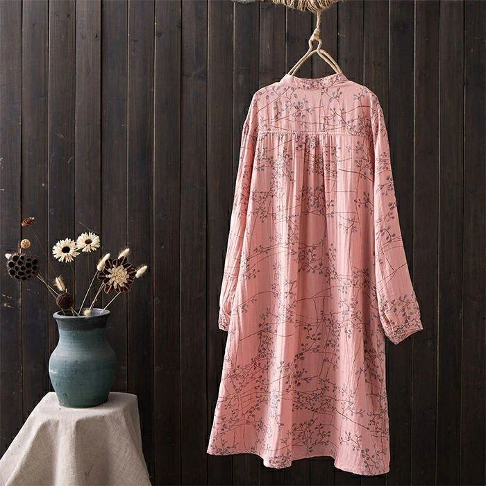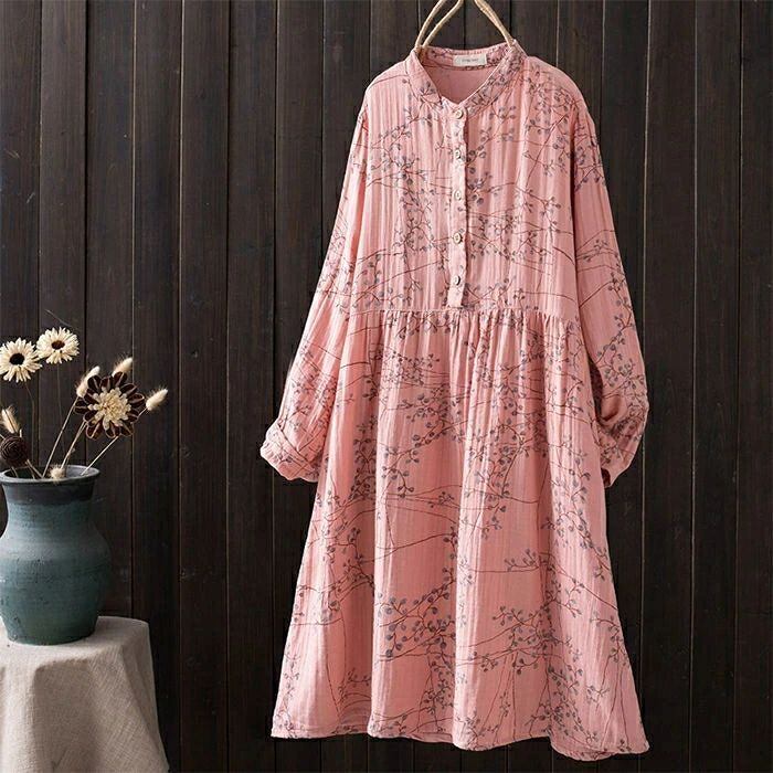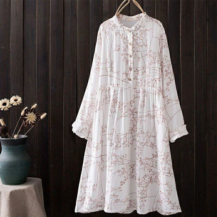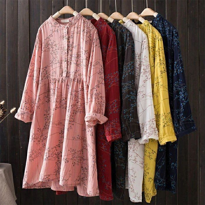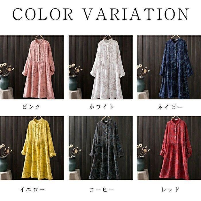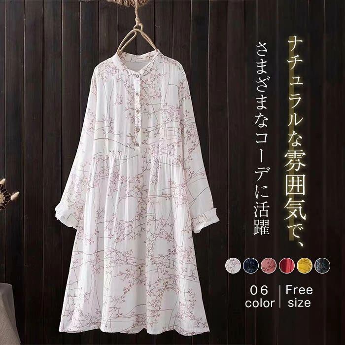 ワンピース シャツワンピース レディース ガーゼワンピース ダブルガーゼ ロング ワンピース 春 秋 立ち襟 長袖 ゆったり 二重ガーゼ ワンピース 綿100% Aライン 総柄 バンドカラー ガーゼ ワンピース 大人 オフィス 通勤 コットン 綿 きれいめ ナチュラル リラックス カジュアル 春 秋 森ガール 上品 通勤 OL お洒落 森ガール 30代 40代 50代 送料無料