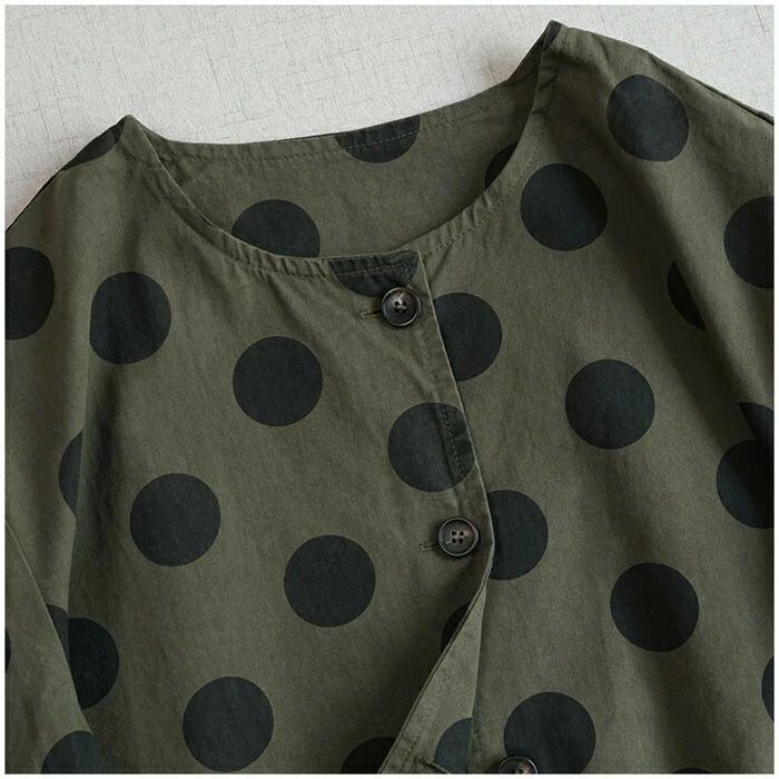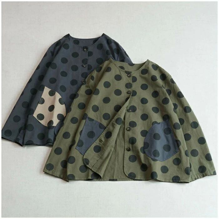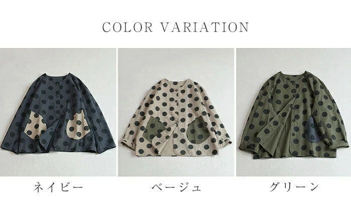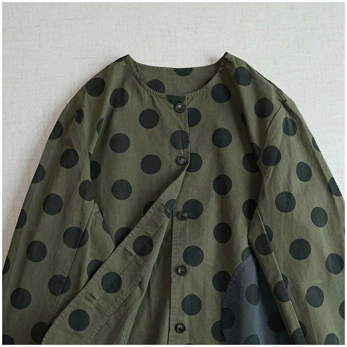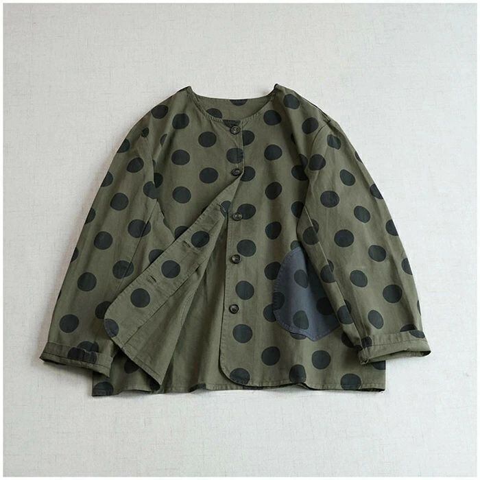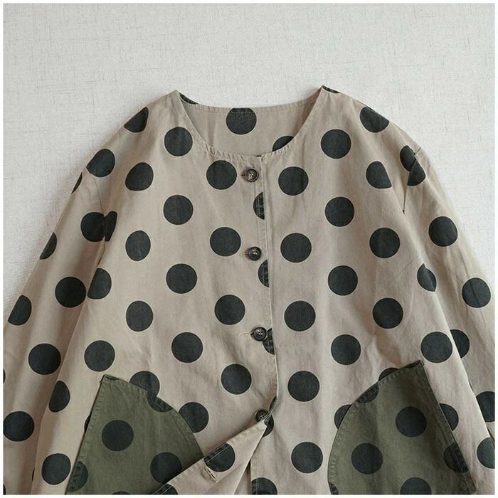 ジャケット レディース 春 秋 ノーカラー ジャケット アウター 上着 羽織り 前開き ドット柄 大きいサイズ ノーカーラー 春秋 ジャケット 羽織 ライトアウター 長袖 大きめ ポケット 大きいドット ゆったり カジュアル 体型カバー 綿 コットン 30代 40代 50代 羽織り ゆったり シンプル 通勤 ライトアウター ゆったり カジュアル 大きいサイズ お洒落 体型カバー 通勤 OL オフィス 大人 着回し 送料無料 ママジャケット おしゃれ 20代 30代 40代 50代