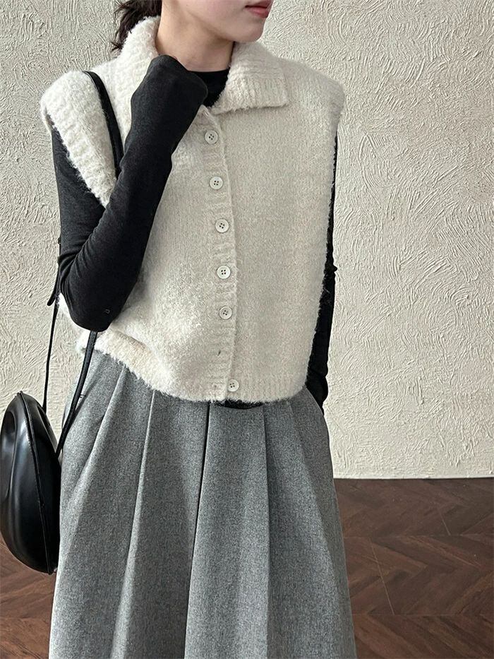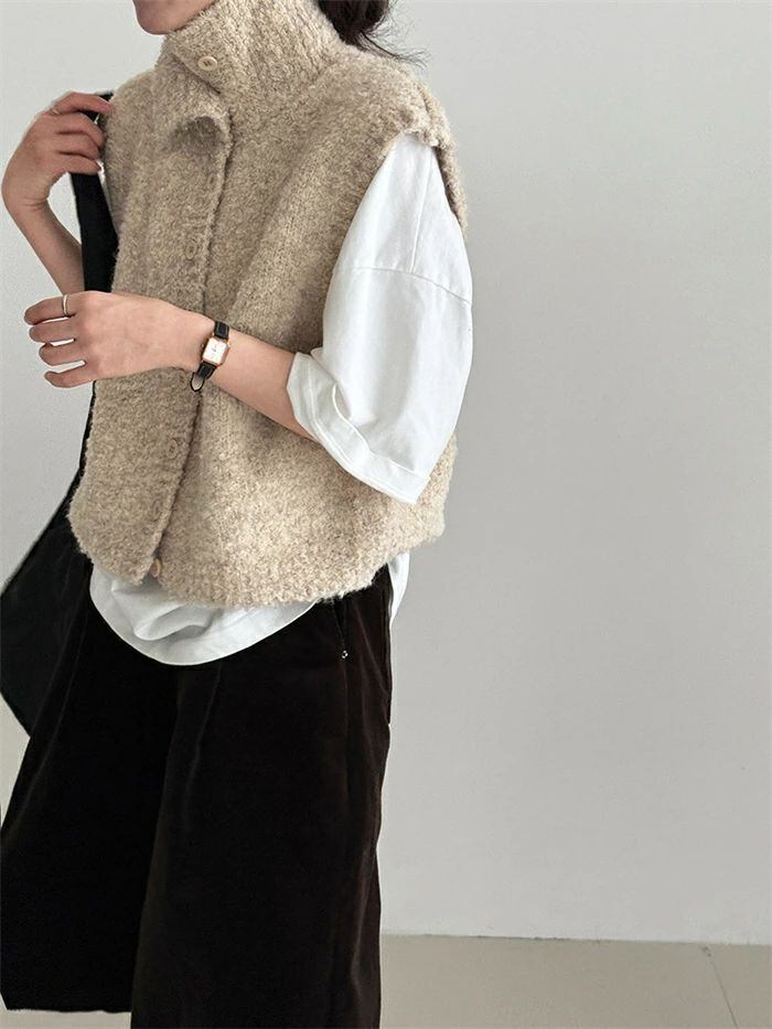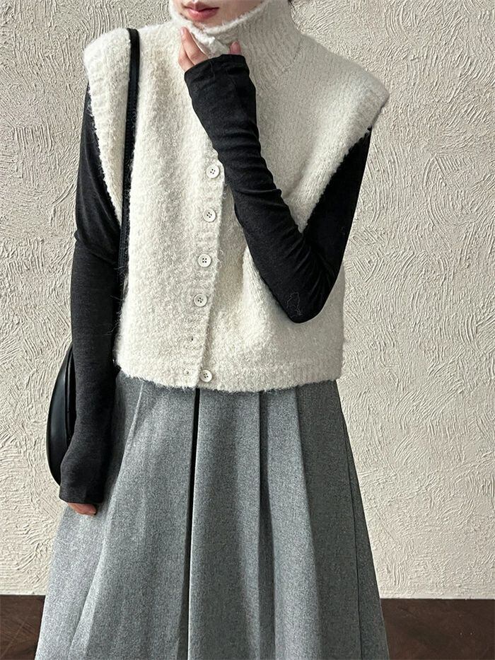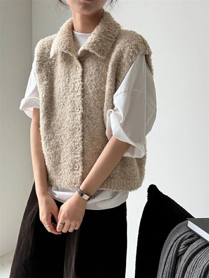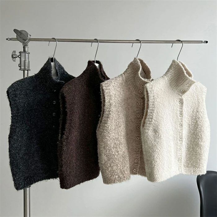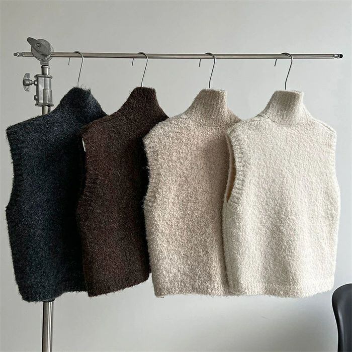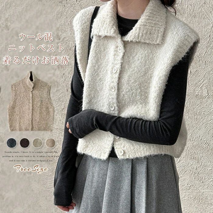 ニットベスト ベスト レディース ニット 立ち襟 前開き 重ね着 トップス ノースリーブ レイヤード 無地 シンプル ウール混 上着 カットソー きれいめ ゆったり 体型カバー おしゃれ 着?せ シンプル フォーマル オフィス 通勤OL 通学 女性 上品 20代 30代 40代 50代