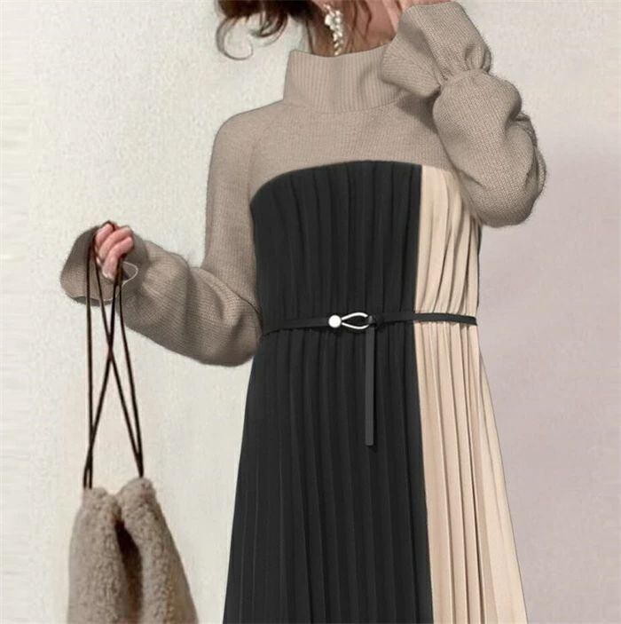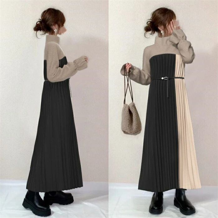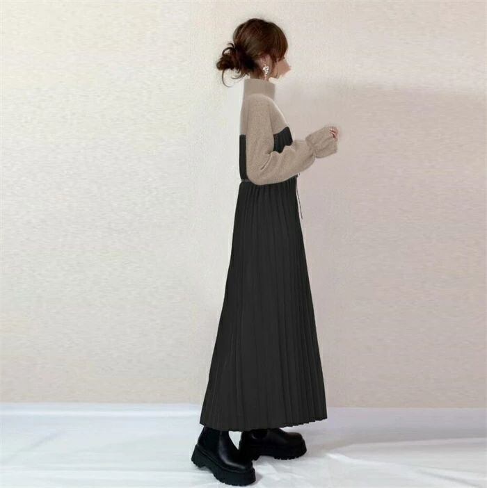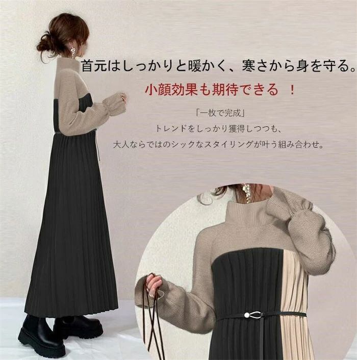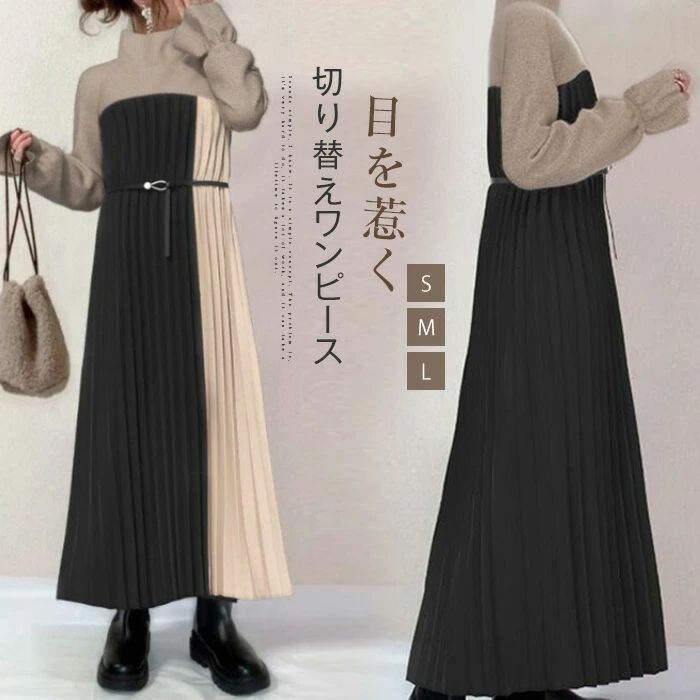 プリーツワンピース 切り替え ロングワンピース レディース 春秋 ワンピース 切り替えワンピース プリーツ ハイウエスト ロングワンピ ワン