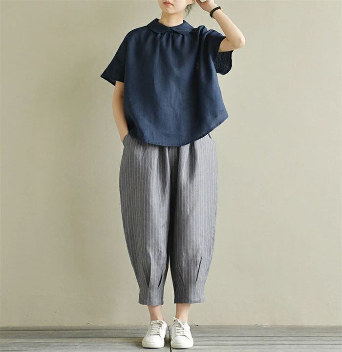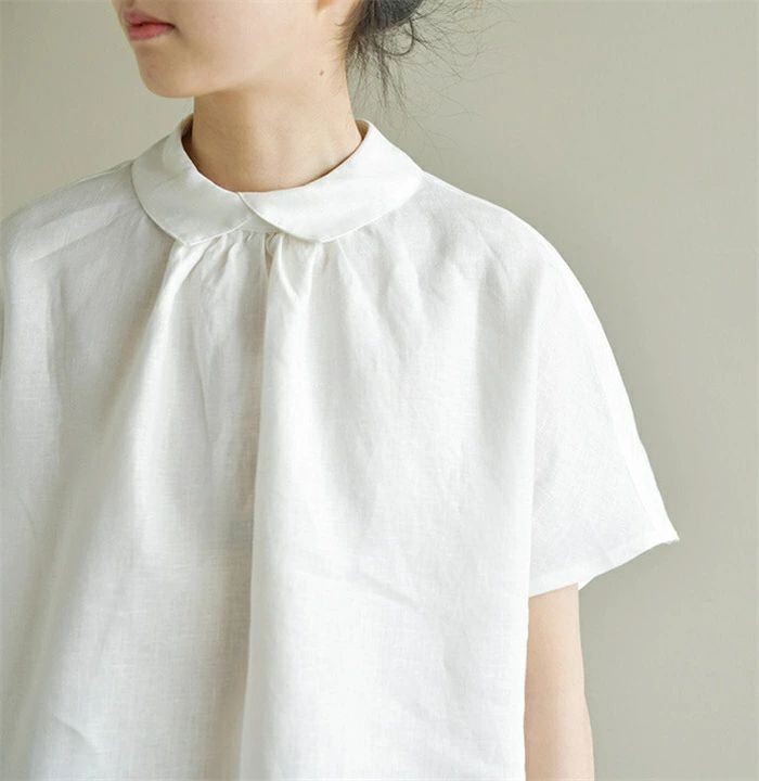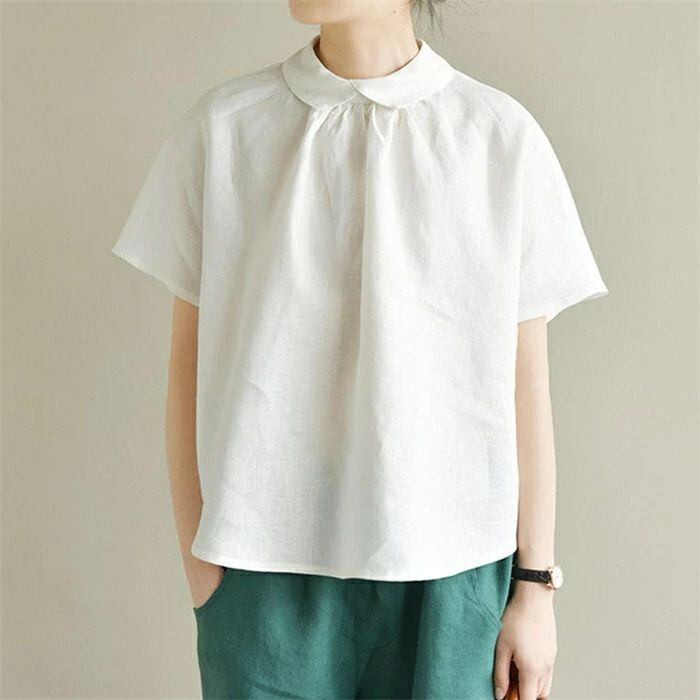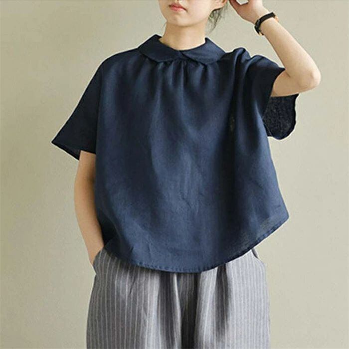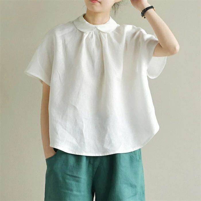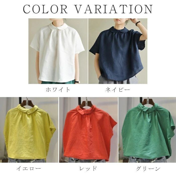 シャツ 半袖 レディース 春夏 麻シャツ 半袖シャツ リネンシャツ 可愛い プルオーバー 麻 リネン 襟付き トップス ゆったり 体型カバー お