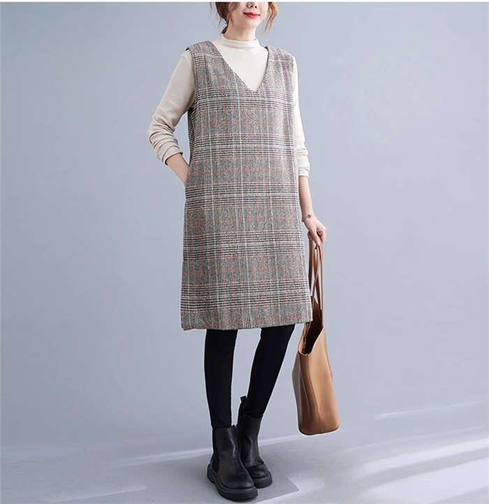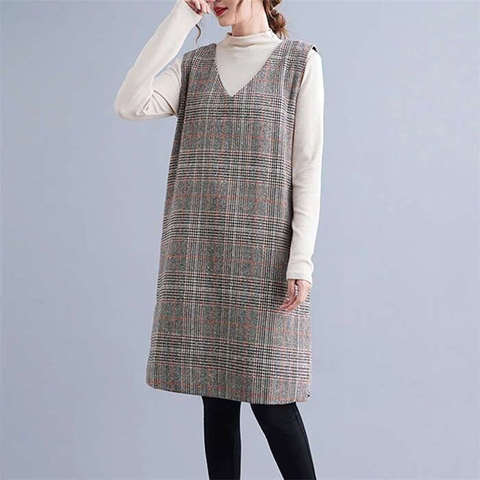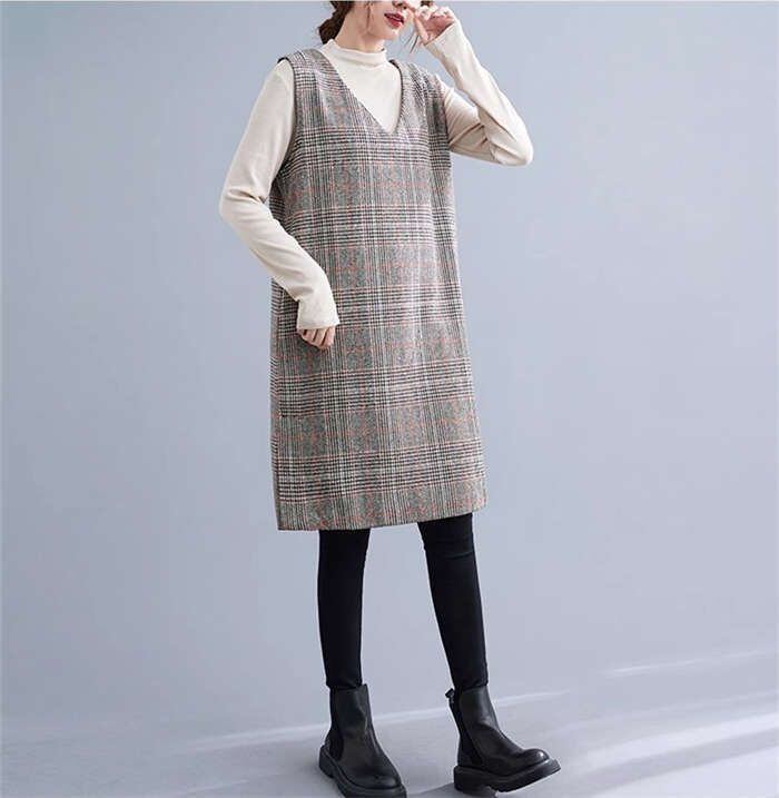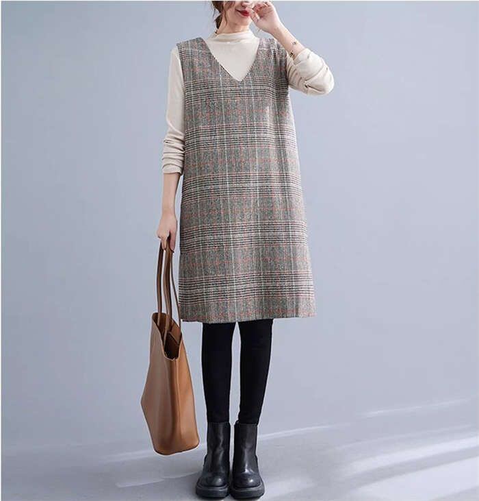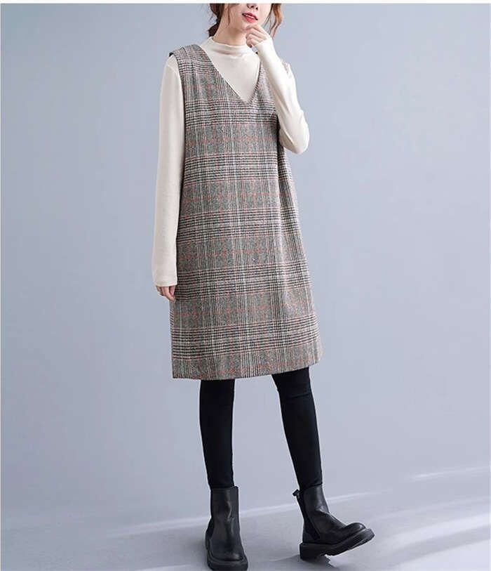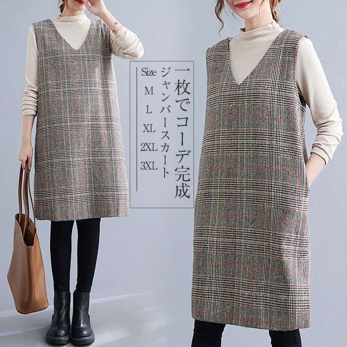 ジャンパースカート きれいめ Vネック ワンピース 秋冬 レディース チュニック ワンピース ジャンスカ サロペットスカート オールインワン
